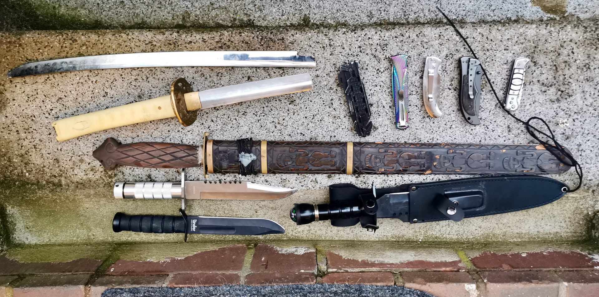 Anschließend durchsuchten die Polizisten seine Wohnung in der Nähe des Marktes und fanden dort weitere Waffen, unter anderem Kampf- und Einhandmesser. Die 70 Zentimeter lange Klinge des Schwertes ist bei dem Angriff auf die Gruppe übrigens zerbrochen.