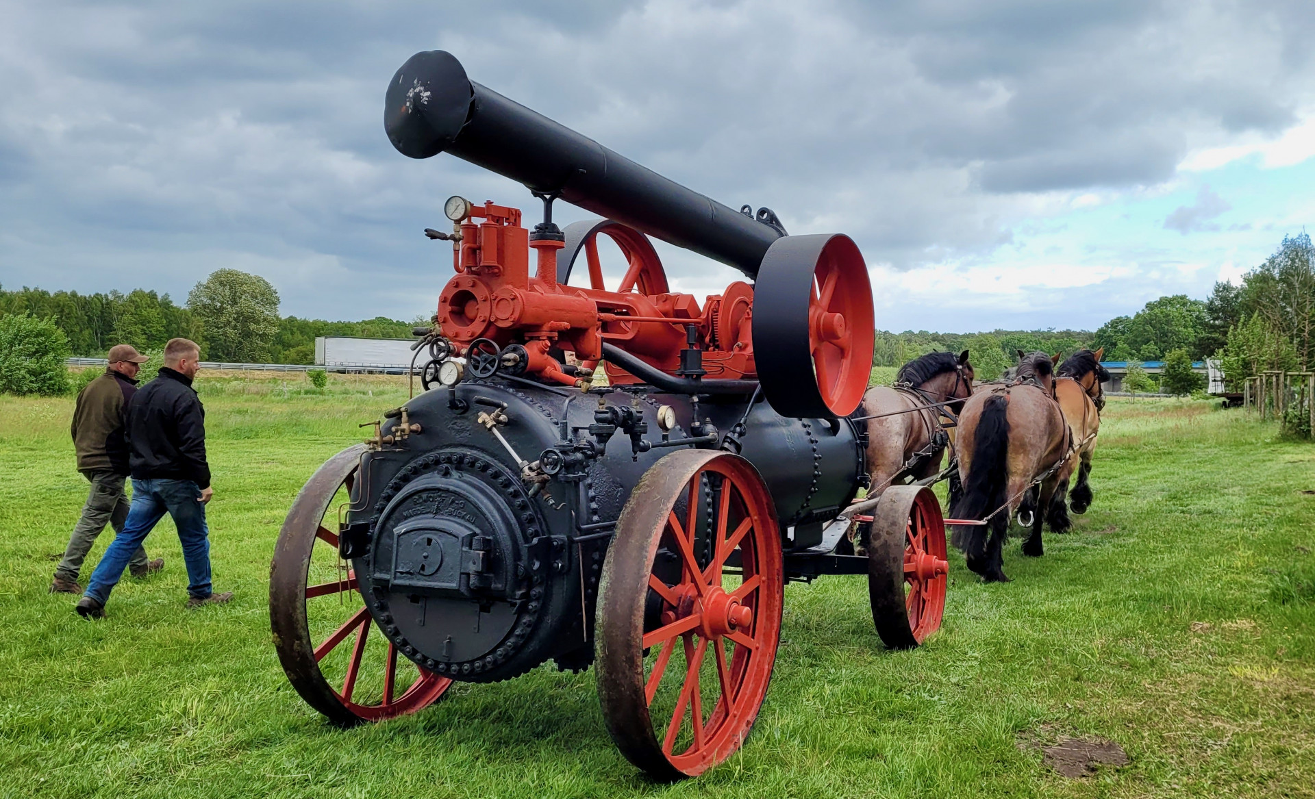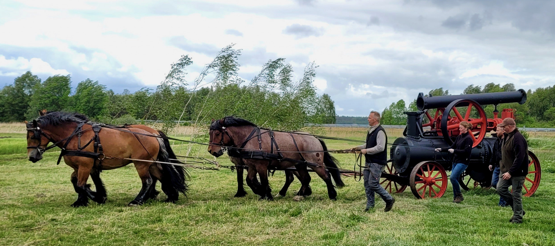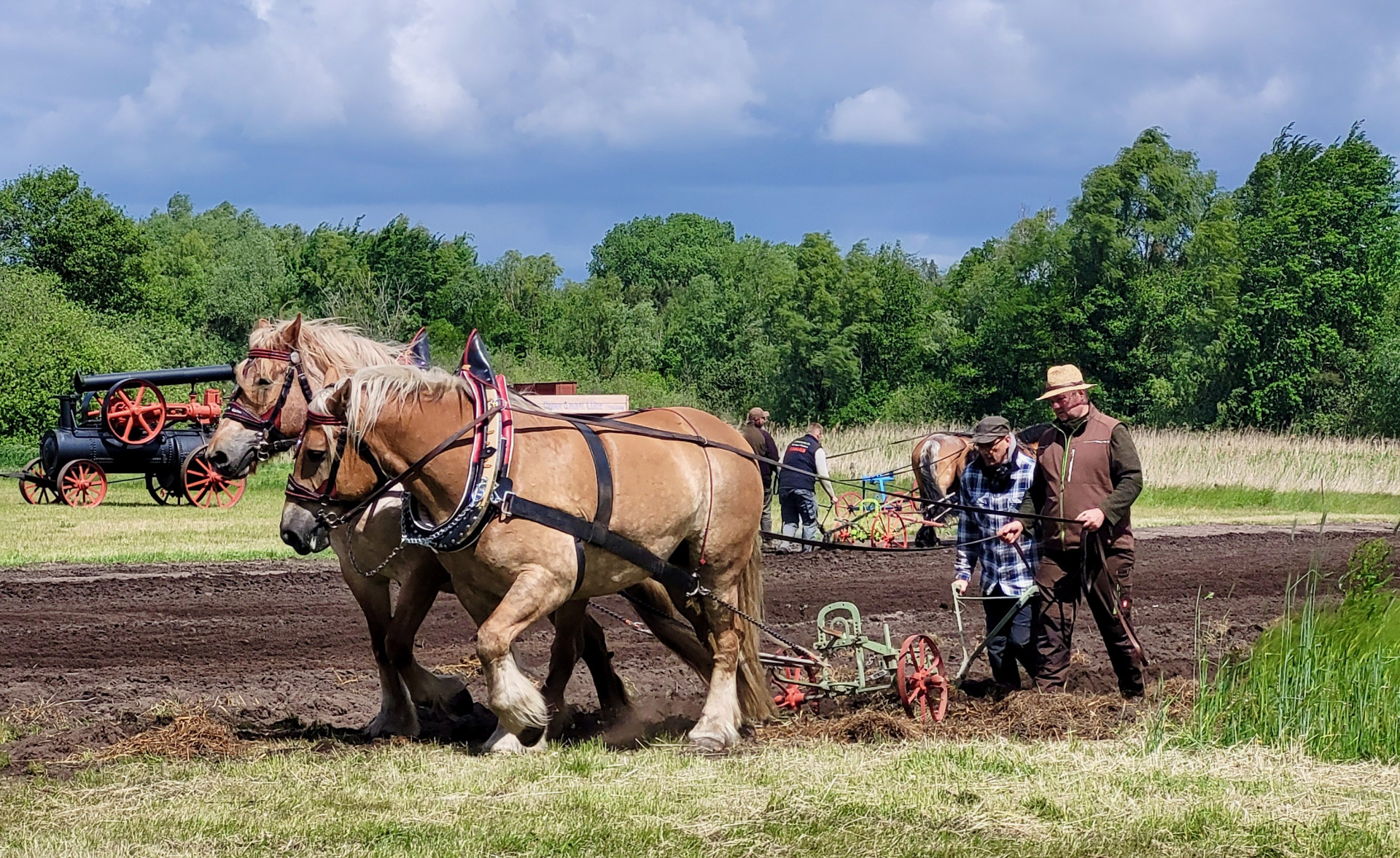 Während der Zuchtschau mit den sanftmütigen Kaltblütern unterm Sattel erfuhren alle Besucher Näheres zu den Stammbäumen der Tiere und zu ihren Züchtern. Das Highlight für viele war die Anspannung im schweren Zug. Die Kaltblüter präsentierten auf imposante Weise ihre Stärke während sie die Dampfmaschine der Firma Buckau R. Wolf mit über sieben Tonnen Gewicht vor den Augen des großen Publikums ins Rollen brachten und am Schauacker des Museums entlangzogen.