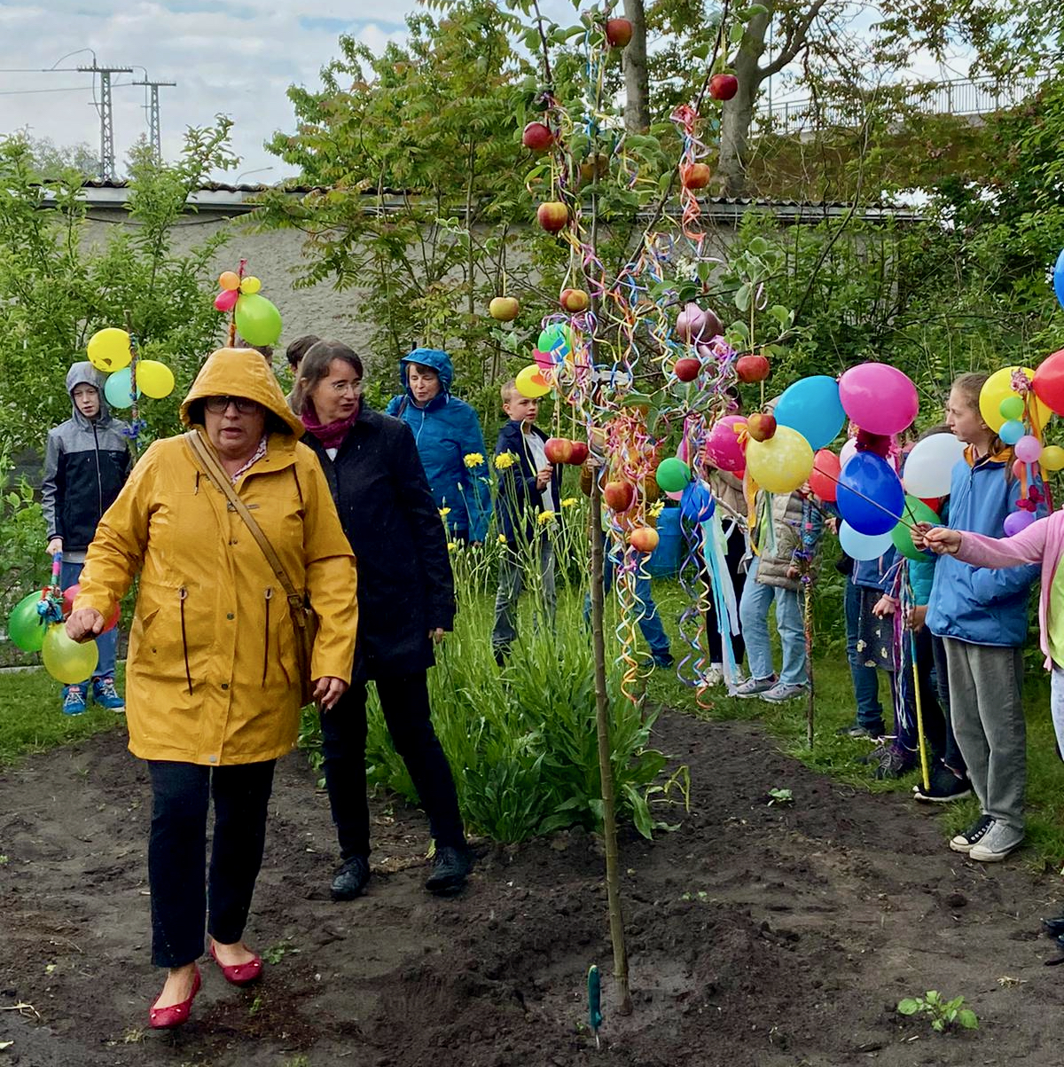 Natürlich ging in den vergangenen Jahren nicht immer alles glatt – wo geht es schon immer glatt? Nach dem Umzug in das alte Maltzaneum folgte später sogar ein Neubau auf dem Grundstück und immer wieder Verbesserungen. Pünktlich zum Jubiläum konnte die Schulleiterin die neuen digitalen Tafeln präsentieren, die seit kurzem im Einsatz sind. Dank des Einsatzes von Lehrern, Eltern und Freunden ist die Arche Schule in den 20 Jahren den Kinderschuhen entwachsen und wird – so die Überzeugung von Manuela Bielke – auch weiterhin wachsen. So wie der Apfelbaum, der zum 20. Geburtstag in dieser Woche symbolisch im Schulgarten gepflanzt wurde.