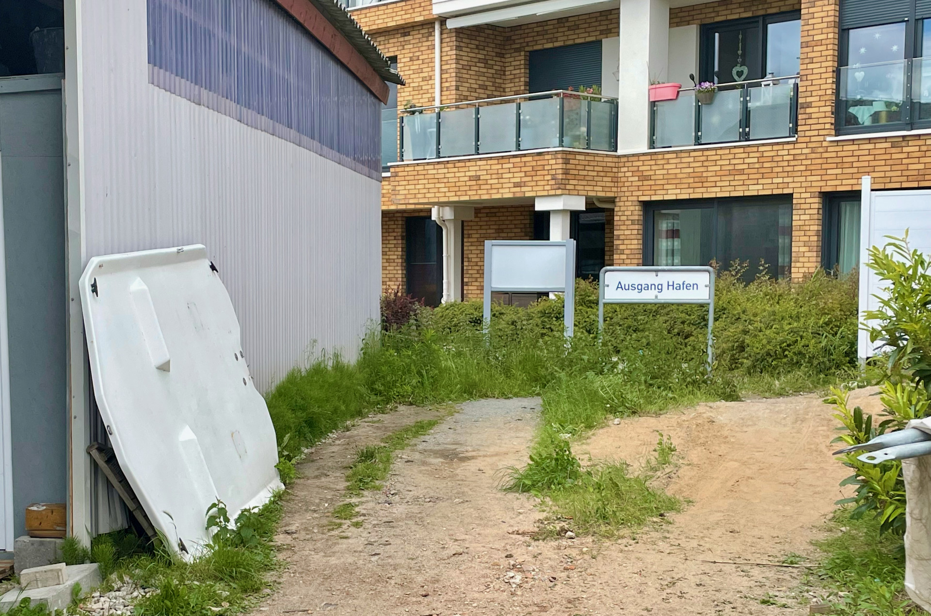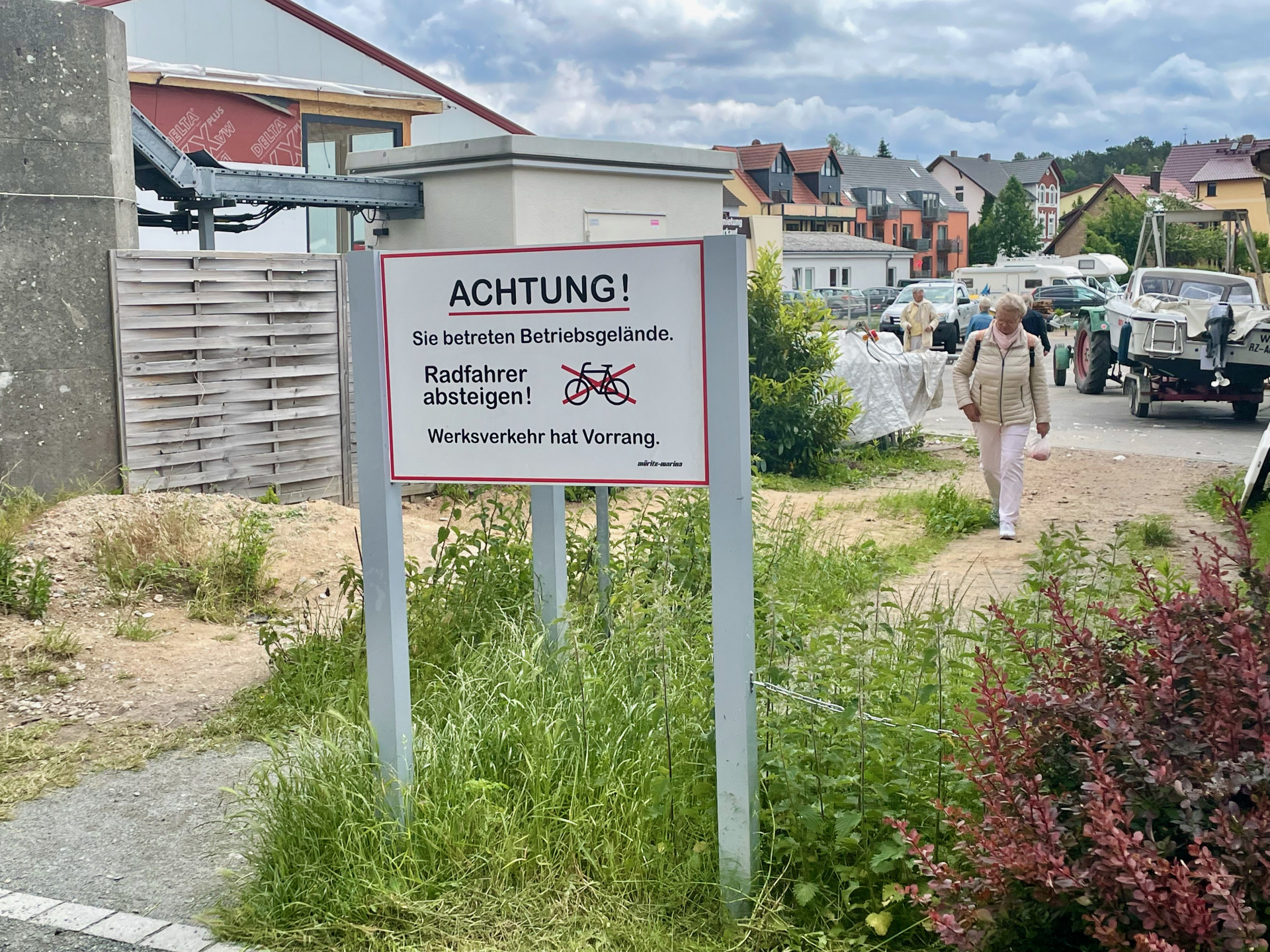 Bis die Stadtverwaltung jetzt mit dem Ausbau eines Teilstückes um die Ecke kam. Denn hinter der Hafenresidenz gibt es ein kleines Stückchen Weg, das am Grundstück der Müritz Marina endet. Dieses Stückchen soll nun weiter geführt werden. Was der Wanderer sieht, wenn er den neuen Weg entlang geht? Jedenfalls keine Müritz, sondern die Hallen der Marina. Weiter soll’s dann später entlang der mehr als 100 Jahren alten Bootsschuppenanlage „Hafen Bleiche“ und dann unterhalb der Grundstücke am Seeufer bis zur Kuhtränke gehen.