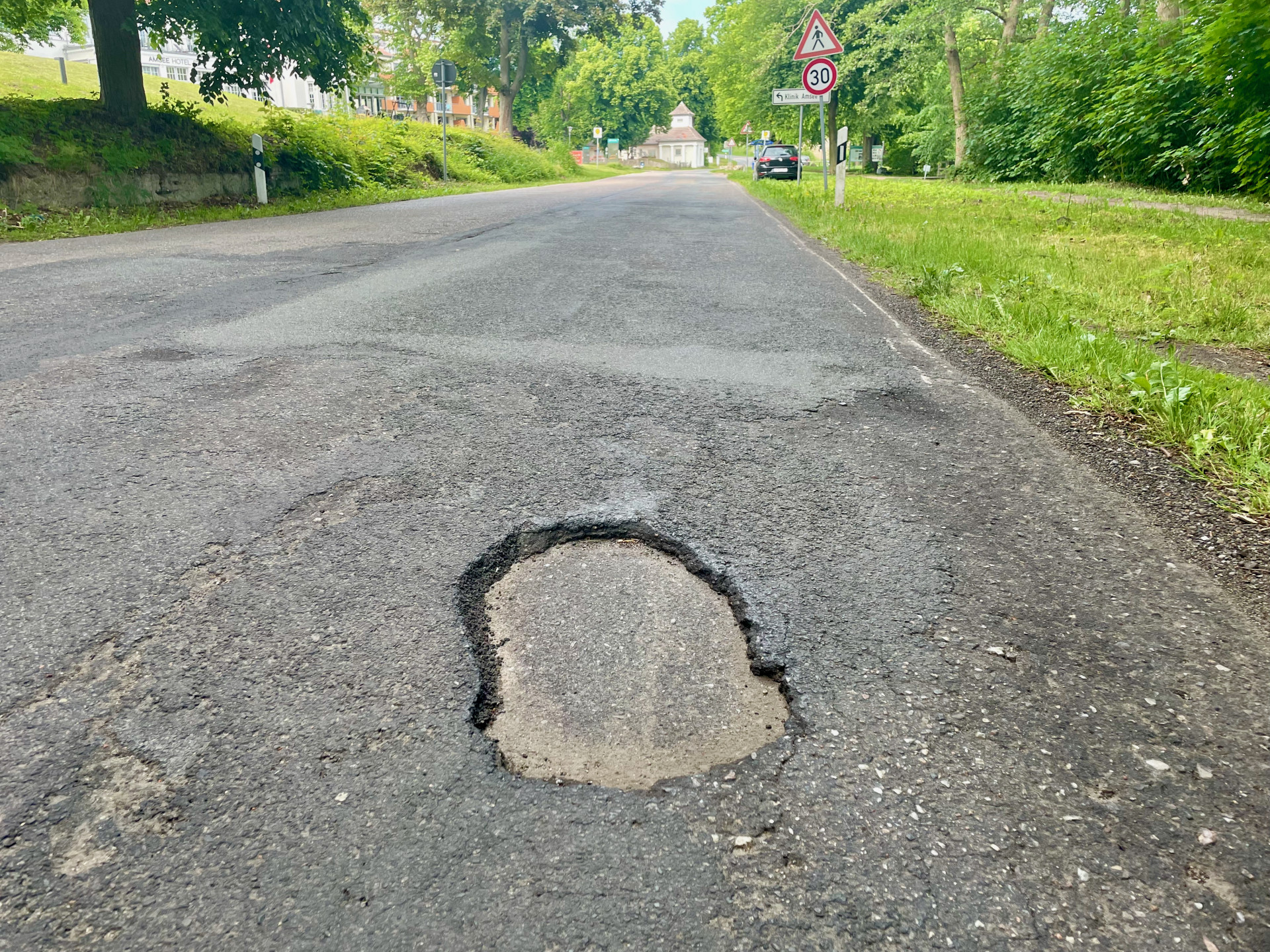Täglich fahren hunderte Autos diese Straße entlang – private genauso wie Transporter, Busse und vor allem auch viele Krankenwagen. Selbst Radler müssen sie nutzen. Doch die Straße zwischen dem Ende des Falkenhäger Weges und Jägerhof ist seit Monaten in Abschnitten in einem mehr als schlechten Zustand. Loch an Loch – eins tiefer als das andere, und gefährliche Rillen. Müritzer, die dieses Strecke regelmäßig nutzen, haben bislang vergeblich bei der Stadt nachgefragt, wann endlich ausgebessert wird. „Wir sind Müritzer“ hat jetzt eine Antwort bekommen.