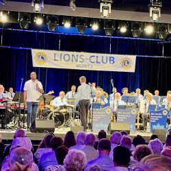 Ein grandioses Konzert mit der Big Band des Bundespolizeiorchesters unter der Leitung des Müritzers Jan Diller und mit Stargast Kirk Smith erlebten gestern die Besucher im ausverkauften Warener Bürgersaal. Das Benefizkonzert des Lions-Club Müritz, das mehrfach verschoben werden musste, ist bereits eine jahrelange Tradition und kommt verschiedenen Projekten zugute. In diesem Jahr gab’s einen Scheck über 1000 Euro für das DRK-Hospiz in Waren, den Chefin Claudia Bajorat entgegen nahm. Weitere 3000 Euro gingen an die Warener Initiative „Müritz hilft“, die sich derzeit ehrenamtlich um ukrainische Flüchtlinge kümmert.