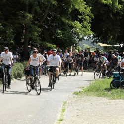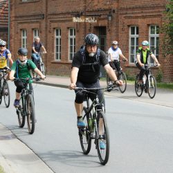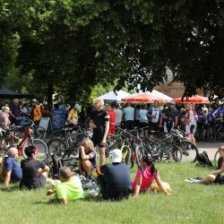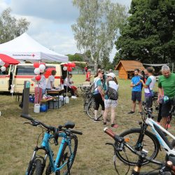 Erstes Ziel – der Fahrradstopp in Rechlin. Eine kleine Obstpause zur Stärkung und kühle Getränke sorgten für einen Energieschub. Denn warme Luft begleitete den Korso, der um einige Radler in Rechlin verstärkt wurde. Um 13 Uhr saß die Fahrradgemeinschaft gemeinsam beim Mittagsimbiss am Röbeler Stadthafen. Danach ging es weiter in Richtung Sietow Dorf, dem Start der Familien-Tour. Dort stieg die Anzahl der Zweiräder an – unter ihnen auch viele Kinder –, um die verbleibenden 20 Kilometer bis nach Waren zu fahren.