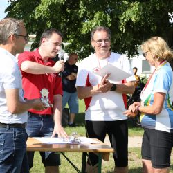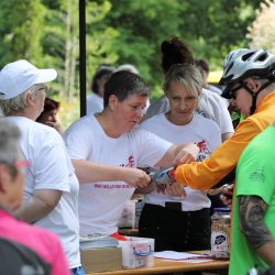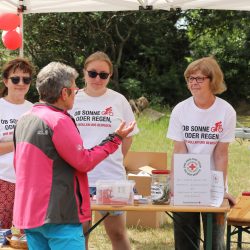 Im Volksbad warteten Medaillen und Urkunden auf alle Teilnehmer, und Ehrenamtskoordinator Ronny Möller mit der Auswertung der 15. DRK ZweiRadTour. „Wir haben heute gemeinsam rund 10.780 Kilometer mit dem Fahrrad gemeistert“, so der Rotkreuzler, der noch weitere Zahlen auf seinem Zettel zu stehen hatte.