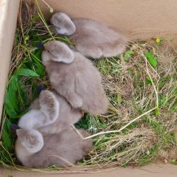Unweit der Unglücksstelle konnten die Beamten vier Schwanengössel im Unterholz auffinden. Sie nahmen sich der Schwanengössel an. In einem Karton sicher verpackt, wurden sie zum Polizeirevier in Güstrow gebracht. Dort sollen diese zur weiteren Versorgung und Aufzucht vom Tierschutzbeauftragten abgeholt werden.