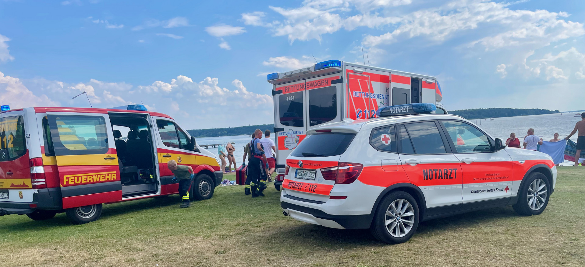 Ein unbeschwerter Sommertag endet in einer Tragödie: Am Warener Volksbad haben sich heute Nachmittag dramatische Szenen abgespielt. Badegäste entdeckten plötzlich eine Frau leblos mit dem Gesicht im Wasser treibend. Die anwesende Rettungsschwimmerin war sofort zur Stelle, zog die Frau ans Ufer und begann mit der Reanimation. Notarzt und Notfallsanitäter übernahmen wenig später. Doch für die 67-Jährige kam leider jede Hilfe zu spät. Und während ganz viele Helfer – DRK, Notarzt, Wasserwacht, Rettungsschwimmer und Feuerwehr – fast zwei Stunden lang mit vereinten Kräften um das Leben der Frau kämpften, ging der Badetrubel ringsherum fröhlich weiter. Teilweise sehr dicht am Ort des Geschehens. Zwar haben zunächst andere Badegäste die Rettungsaktion mit ihren Handtüchern abgeschirmt, doch immer wieder versuchten Schaulustige dichter an das Geschehen heran zu kommen – teilweise vom Wasser aus. Letztendlich rückte Warens Feuerwehr mit Sichtschutz an. Aber auch das störte einige nicht.