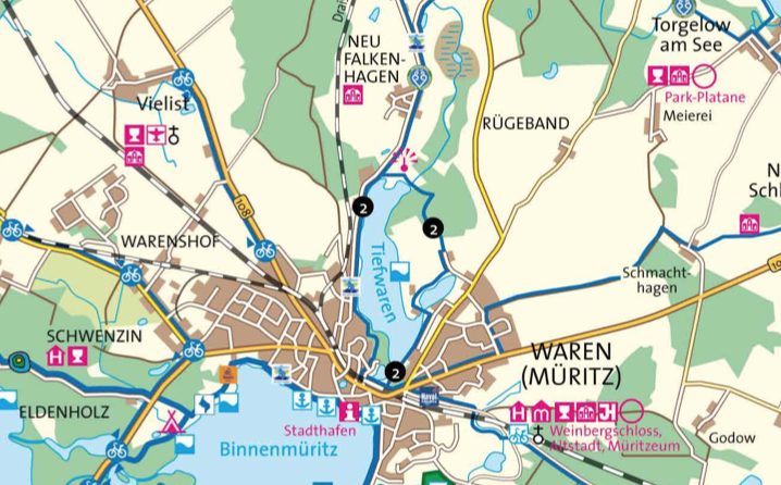 Auf vielen anderen Radwegekarten, unter anderem auf der bei Radlern sehr beliebten Internetseite „bikemap“, ist der Weg um den Tiefwarensee allerdings so ausgezeichnet, wie ihn die Warener seit Jahrzehnten kennen – direkt am Ufer (Foto unten). Versehen mit dem Hinweis: Diese Tour hat eine Gesamtlänge von ca. 9 km, wobei davon ca. 4-5 km reiner Naturweg ist. Das bedeutet, die eine oder andere kleine Baumwurzel sollte den begeisterten Radfahrer bzw. dessen Fahrrad nichts ausmachen.
