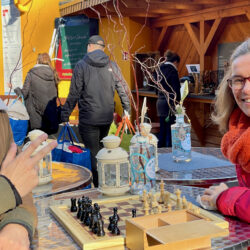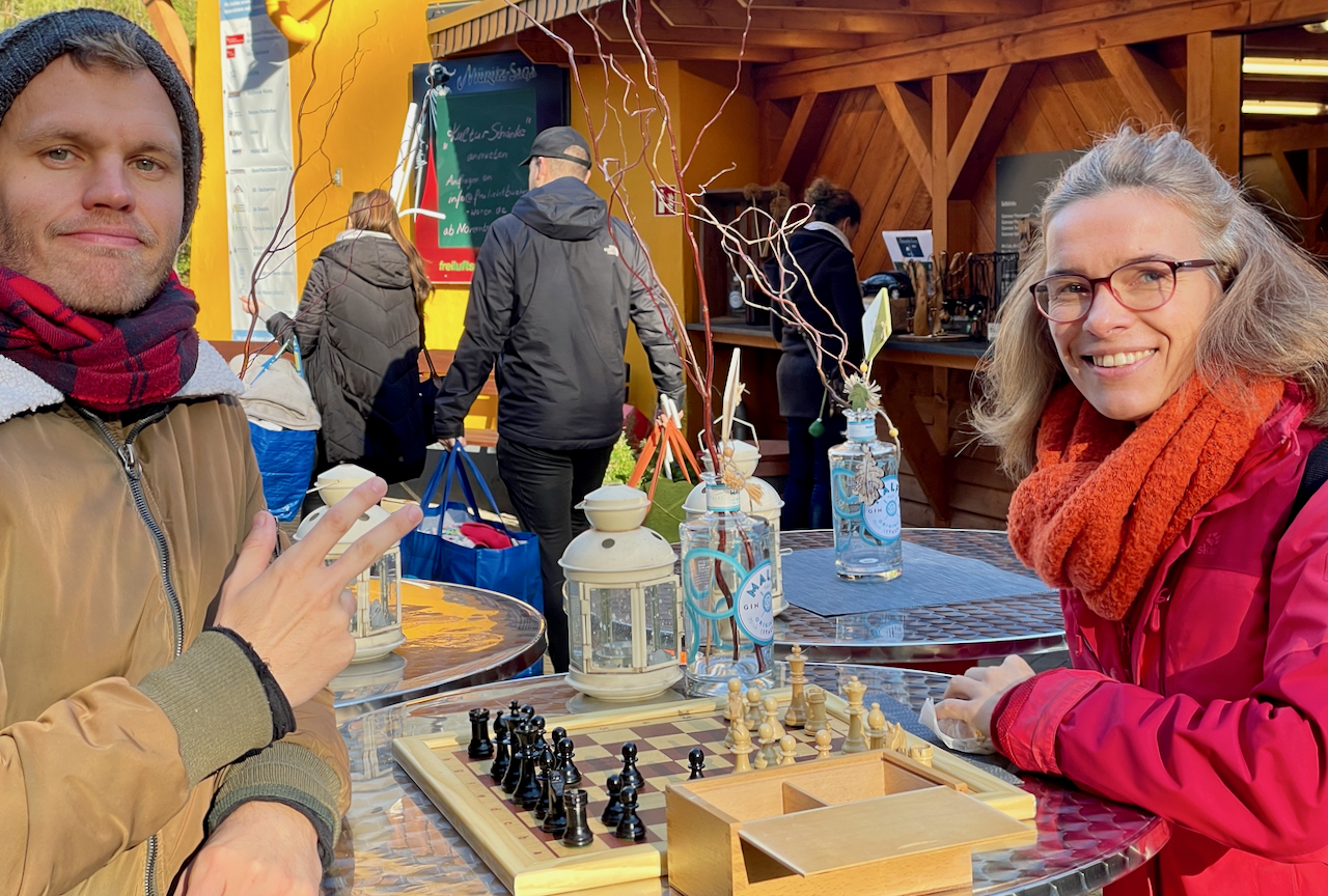 Zufrieden waren am Ende nicht nur die Verkäufer, die das eine oder andere Geschäft gemacht haben, sondern auch die vielen Besucher. Etliche von ihnen nutzten das schöne Wetter für einen Spaziergang zum Mühlenberg und gingen mit vollen Taschen wieder nach Hause. Aber meistens nicht sofort. Denn die gemütliche Atmosphäre auf der Freilichtbühne lud regelrecht ein, mit anderen zu quatschen, sich auszutauschen, gemeinsam einen Kaffee zu schlürfen, warme Bretzeln zu schlemmen und hier und da auch, um mit einem Sektchen anzustoßen. Sogar eine Schachpartie gab’s am Rande. Man hat gemerkt, dass die Menschen die Stimmung fernab von den täglichen Problemen genossen haben.