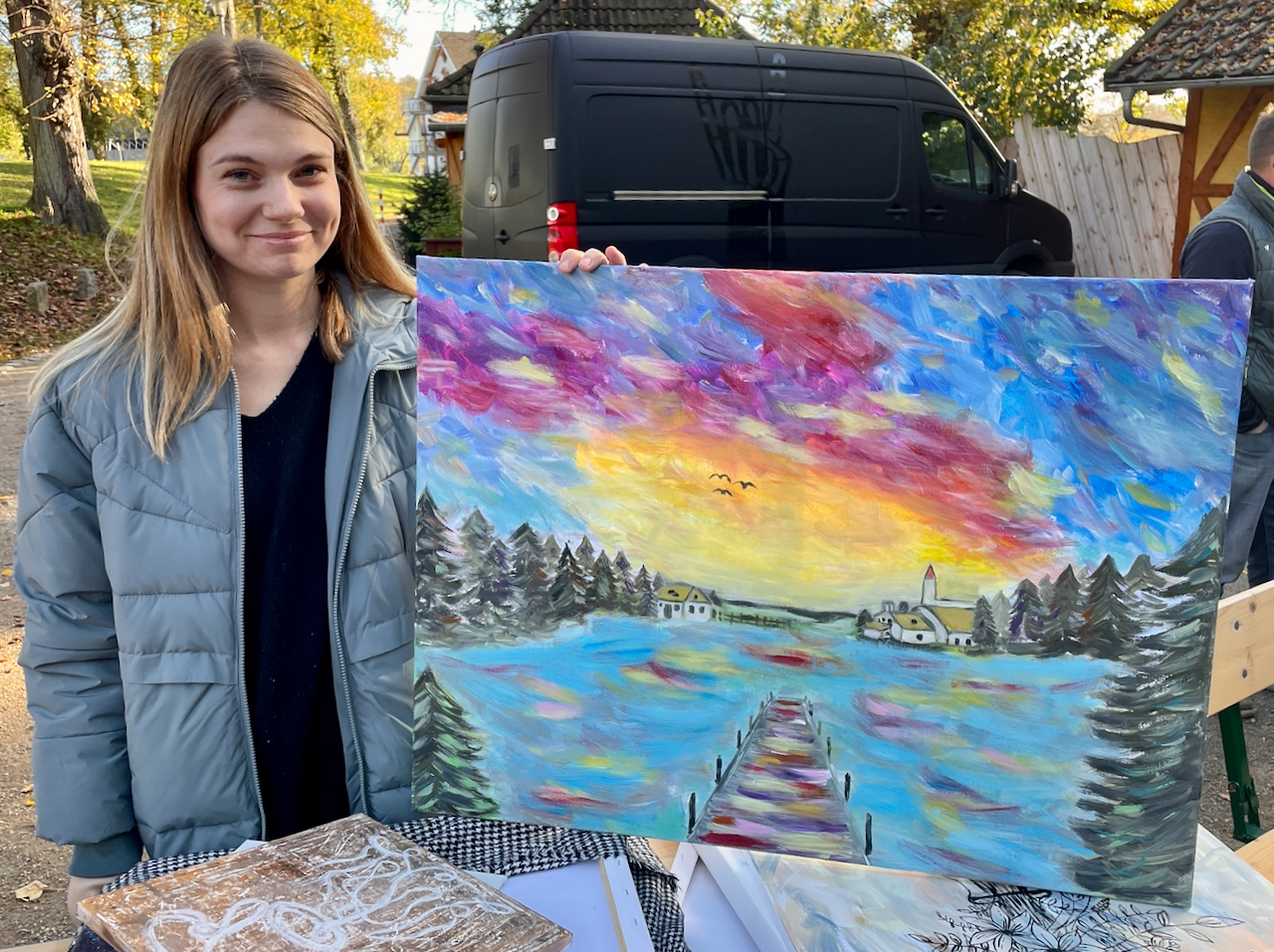 Die 27-jährige Jacqueline aus Neubrandenburg bot neben aussortierten Dingen auch selbst gemalte Bilder in Waren an. „Das sind Corona-Arbeiten“, verriet sie und freute sich über das Interesse an ihren wirklich schönen Werken.