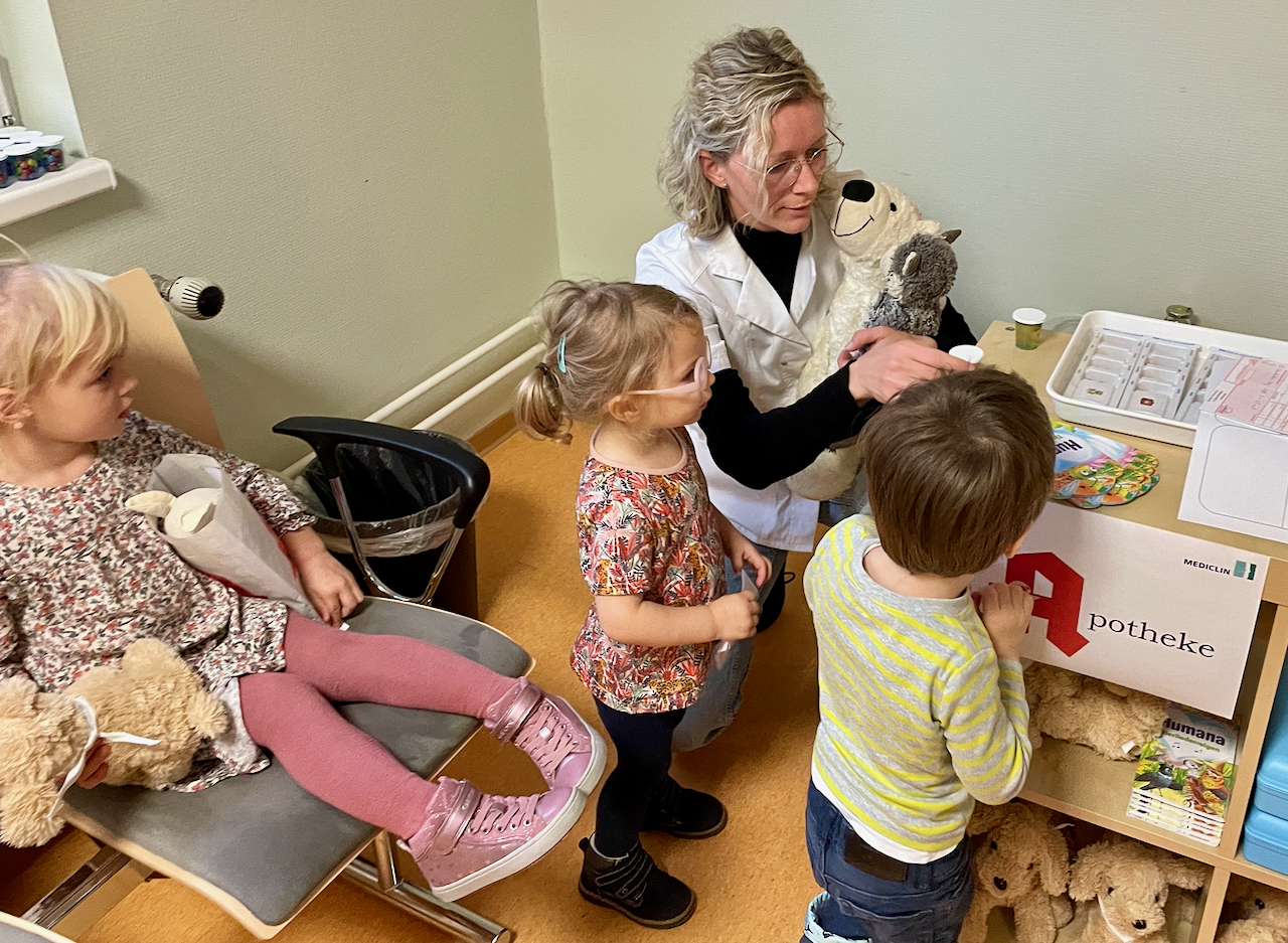 Und noch eine ganz persönliche Anmerkung: Der gestrige Termin in der „Teddyklinik“ war mit Abstand einer der schönsten journalistischen der vergangenen Monate: Dieser Einsatz, mit dem die Klinik-Mitarbeiter die Teddystation unwahrscheinlich detailreich eingerichtet haben, ihre Freude und Liebe bei der Begleitung der kleinen Besucher und die Fürsorge, mit der die Kita-Kinder sich um ihre ‚kranken‘ Kuscheltiere gekümmert haben, waren in dieser rauen Zeit einfach sehr wohltuend.