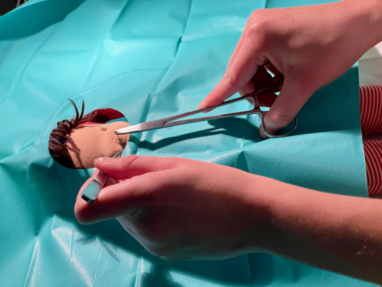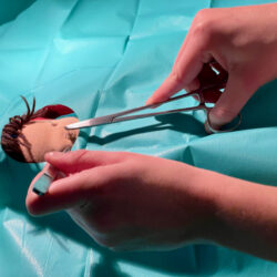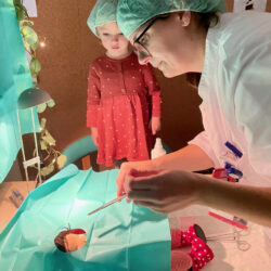 Von der Anmeldung ging’s je nach Diagnose entweder zum Röntgen, zum Abhorchen oder gleich in den OP. Einer der ersten, der unters Messer musste, war ein Eisbär. Ihn hatte es am Knie erwischt. Assistenzärztin Maja Wolnik, die normalerweise auf der Urologie des Müritz-Klinikums für ihre Patienten da ist, bereitete alles stilecht für den anstehenden Eingriff vor und erklärte der kleine „Mama“ des Eisbären, was gleich passiert. Die meisterte die komplette OP auch richtig cool und half zwischendurch sogar mit. Man könnte meinen, sie hatte nicht zum ersten Mal OP-Besteck in der Hand…