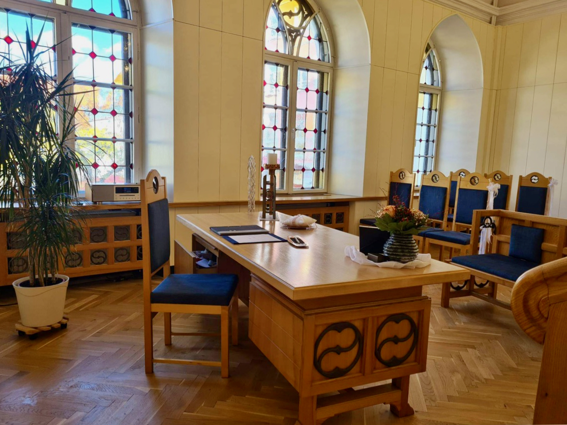 Foto unten: Frische Farbe und neue Polster gab’s im vergangenen Jahr für den Trau-Saal im Warener Rathaus.