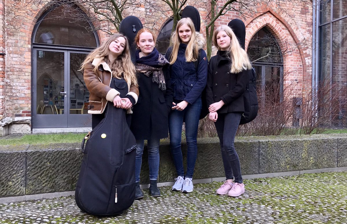 Außerdem werden in Parchim zwei Streichensembles aus Waren musizieren. Im klassischen Streichquartett spielen Yvonne Zädow, Aurelia Rogalski, Leoni Dettenbach und Stefan Rogalski u.a. die „Sentimentale Sarabande“ aus der Simple Symphony von Benjamin Brittan.