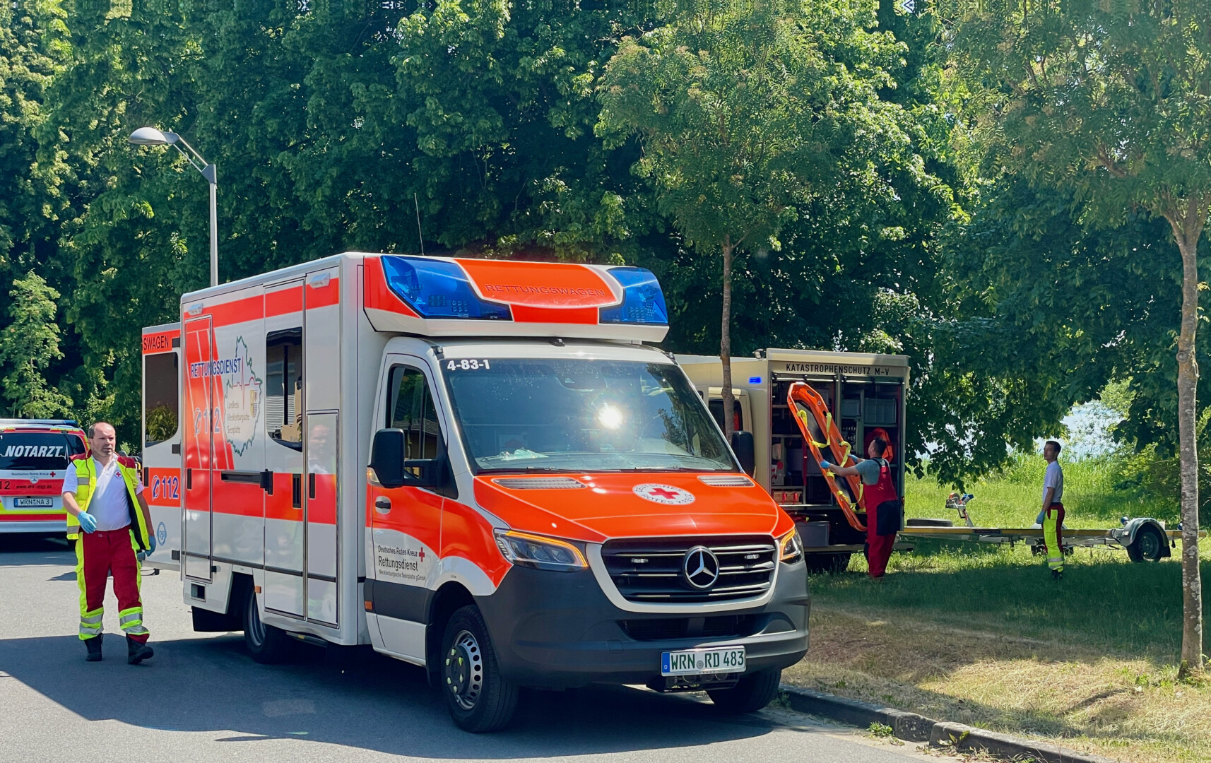 Warens Feuerwehrleute steuerten eine Bucht vor dem großen Badestrand ein, um ihr Boot ins Wasser zu lassen und rasten in Richtung „La Pasionaria“. Schnell hatten sie die Person erreicht und an Bord gezogen. Die Kameraden begannen umgehend mit Reanimations-Maßnahmen, ein zweites Feuerwehrboot kam hinzu. Zwischenzeitlich trafen in der Straße an der Feisneck Rettungsdienst und Notarzt ein. Sie warteten an Land auf die Feuerwehr, die mit der Person an einem Steg anlegte. Die gesamte Fahrt über versuchten die Kameraden, mit Herz-Druck-Massage das Leben der Frau zu retten. Vergebens.