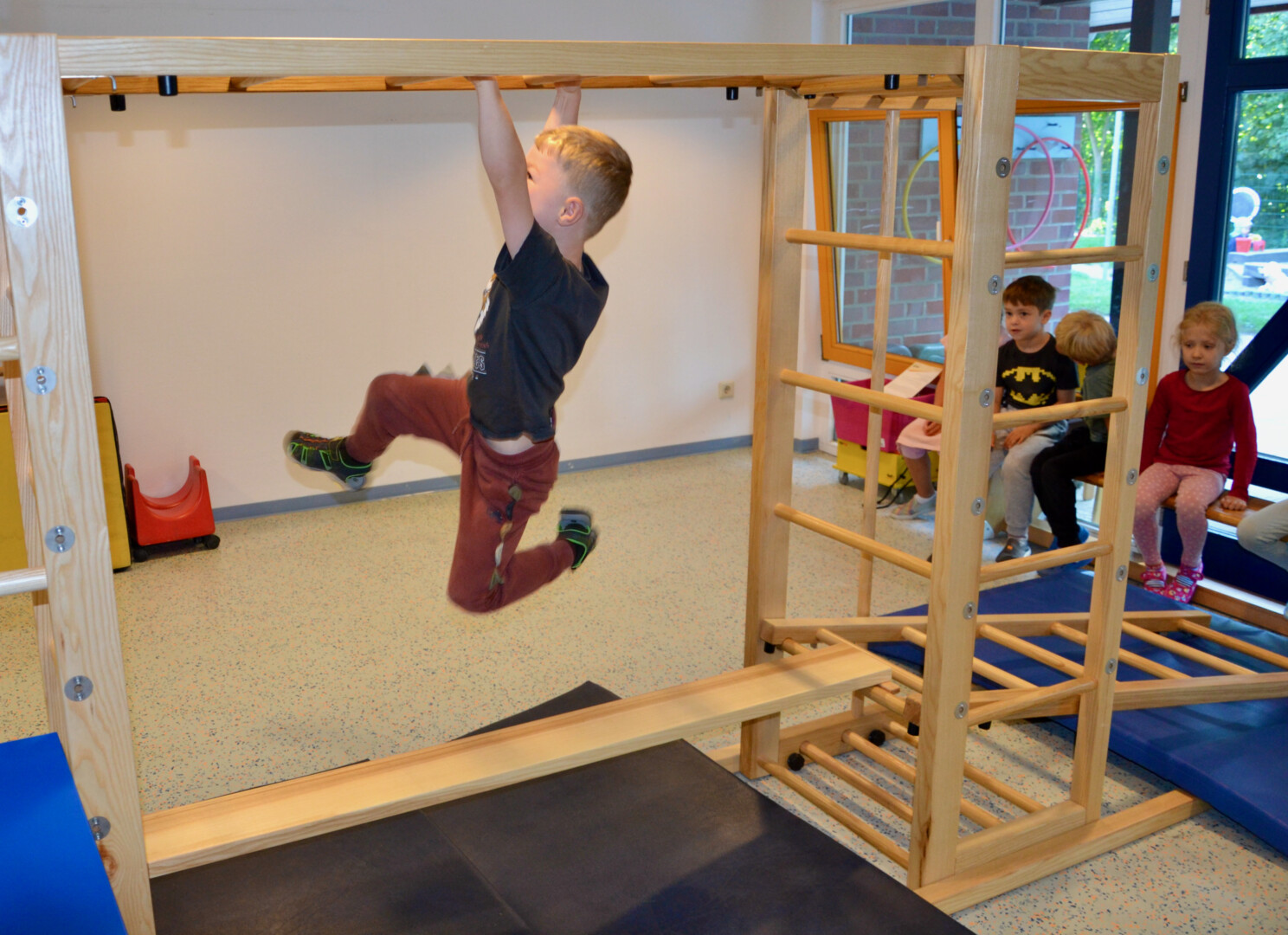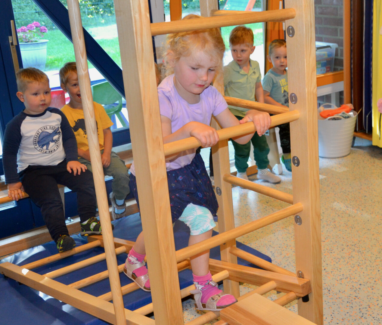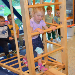 Die „Klinker Knirpse“ turnen und klettern seit kurzem ausgiebig: In den Räumen ihrer Kita steht nämlich ein tolles Gerät, an dem die Kleinen verschiedene Bewegungsformen wie kriechen, steigen, springen, werfen, fangen, ziehen und schwingen ausprobieren dürfen. Das Gerät kann in beliebiger Form aufgestellt werden und weckt so die Neugierde und den Willen der Kinder, es auch wirklich zu versuchen. Seit Ende Juli kommt es nun zum Einsatz, und alle freuen sich über die Neuanschaffung. Möglich wurde der Kauf nur durch großzügige Spenden, für die sich Kinder, Eltern und Erzieher jetzt bedanken.