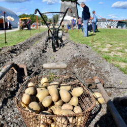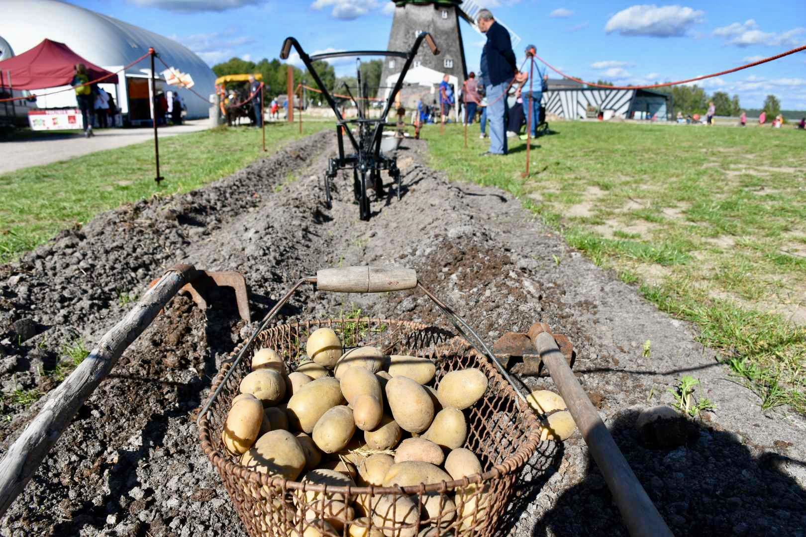 Am heutigen Sonntag stand im Agroneum in Alt Schwerin alles im Zeichen der Kartoffel. Von 10 bis 18 Uhr hatten die Besucher Gelegenheit, sich über die Knolle zu informieren, sie zu ernten, zu essen und mit ihr zu basteln. So konnten am Vormittag auf dem Feld die Kartoffeln in die Körbe gesammelt werden. Die Kinder schufen kleine Kunstwerke aus den Kartoffeln, und auch leckere Kartoffelpuffer wurden angeboten. Das Highlight des Kartoffelfestes war dann am Nachmittag der Umzug mit Traktoren, Kutschen und einem Mähdrescher aus den 60-er Jahren durch das Dorf Alt Schwerin.