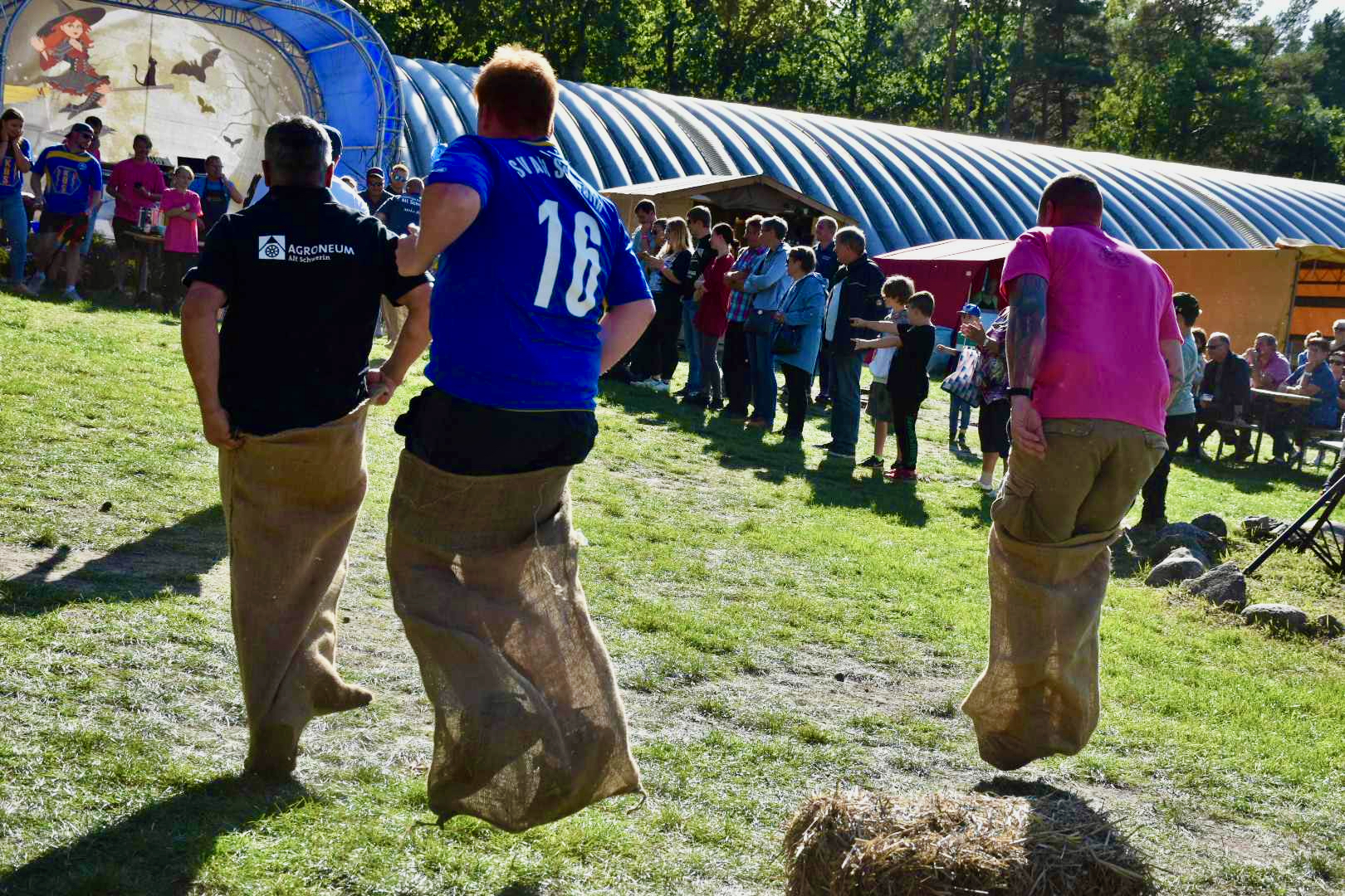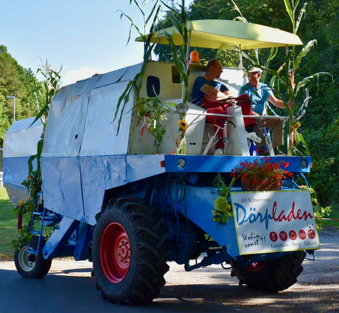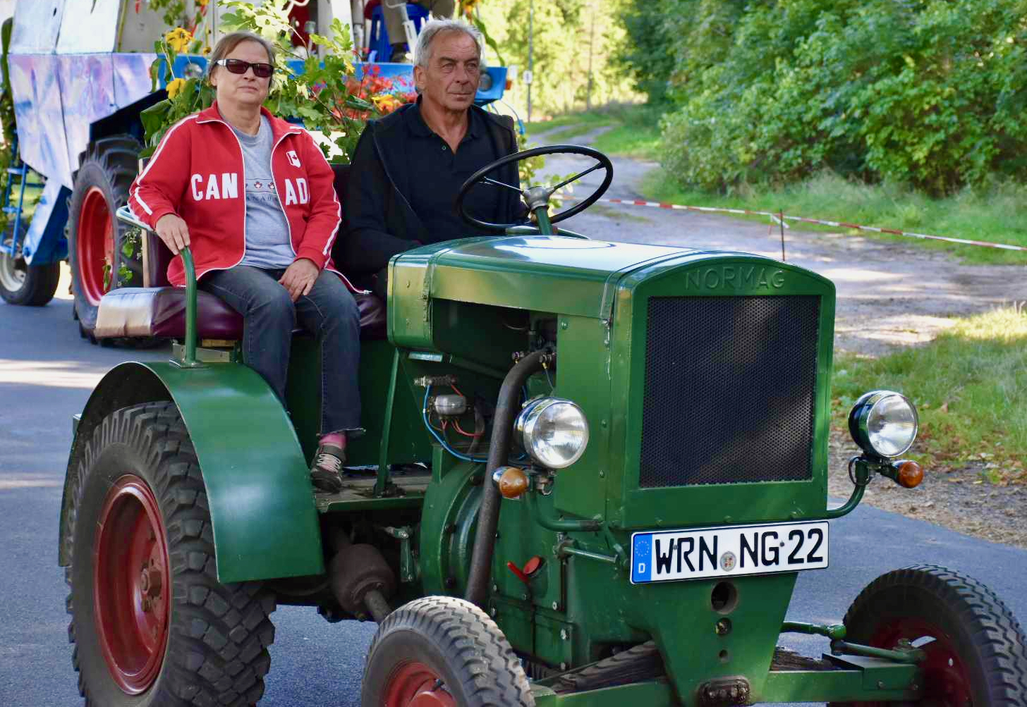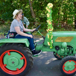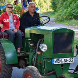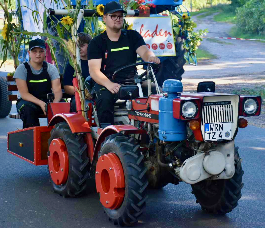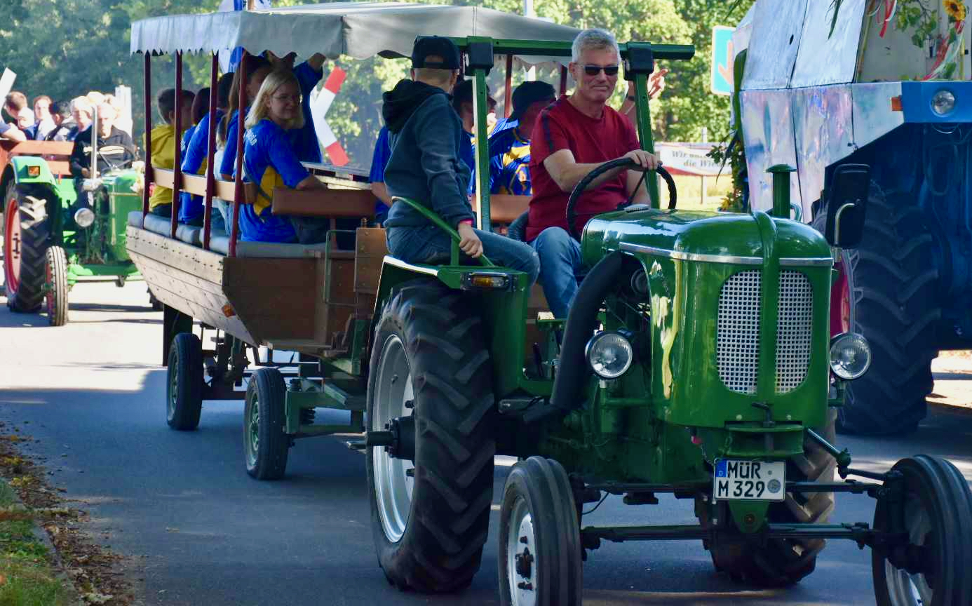 Zahlreiche Schaulustige haben den Teilnehmern zugewunken. Anschließend ging es um den Pokal der „Goldenen Knolle“. In einem Wettbewerb mit insgesamt vier Spielen mussten die fünf angetretenen Teams um den Pokal spielen. Seit zwei Jahren steht der Wanderpokal bei der Freiwilligen Feuerwehr Alt Schwerin. Die freiwilligen Retter konnten den Titel aber nicht verteidigen, denn es gewann das Team des Agroneums. Beim Wettkampf mussten die Teams die längste Kartoffelschale schälen, fünf Kartoffeln auf Zeit schälen, Sackhüpfen und ein Quiz absolvieren. Es war ein knappes Spiel, aber es kann eben nur einen Gewinner geben. Und es war natürlich beste Unterhaltung für die vielen Zuschauer. Im kommenden Jahr geht dann der Kampf um den Pokal in die nächste Runde.