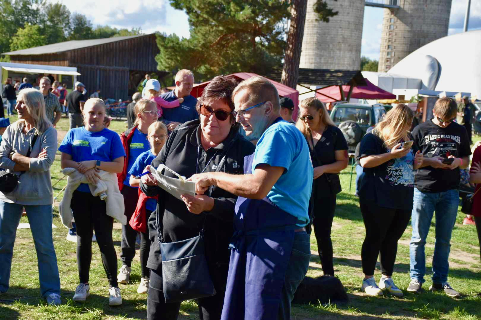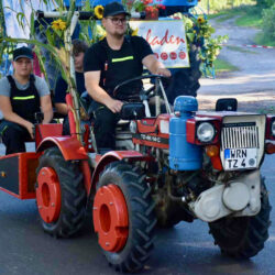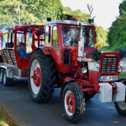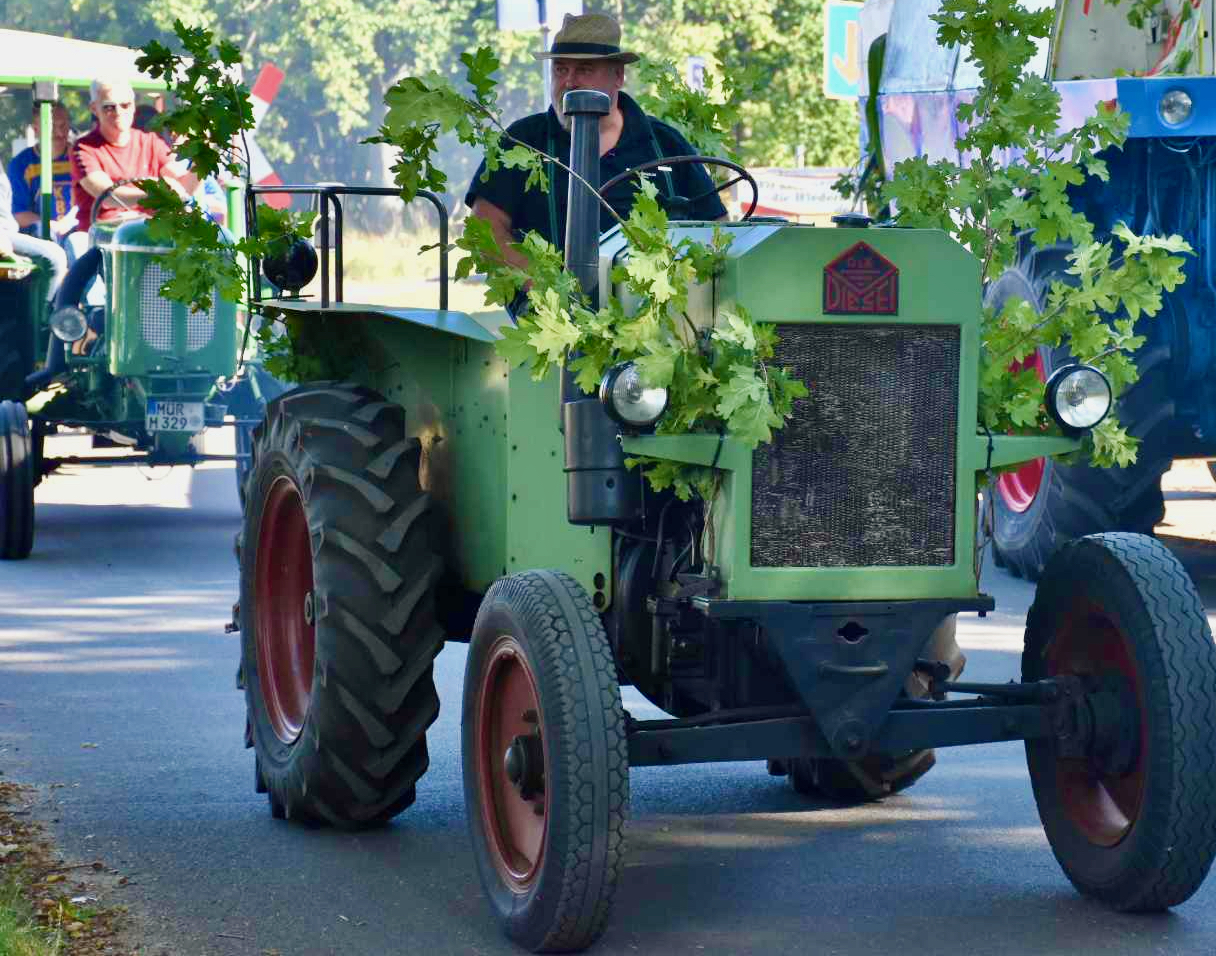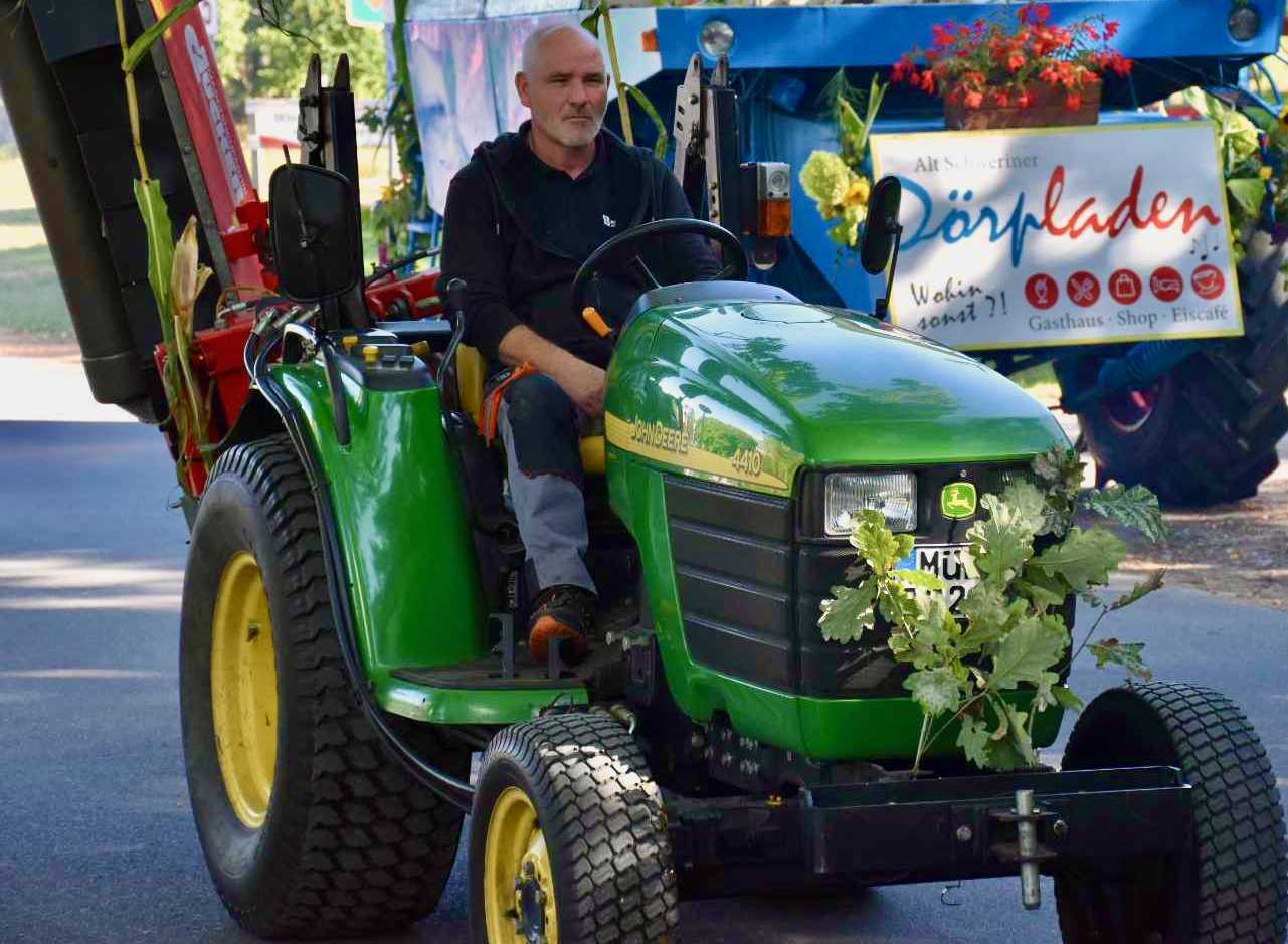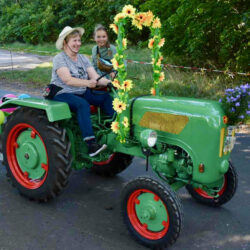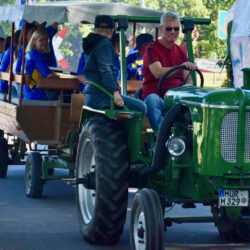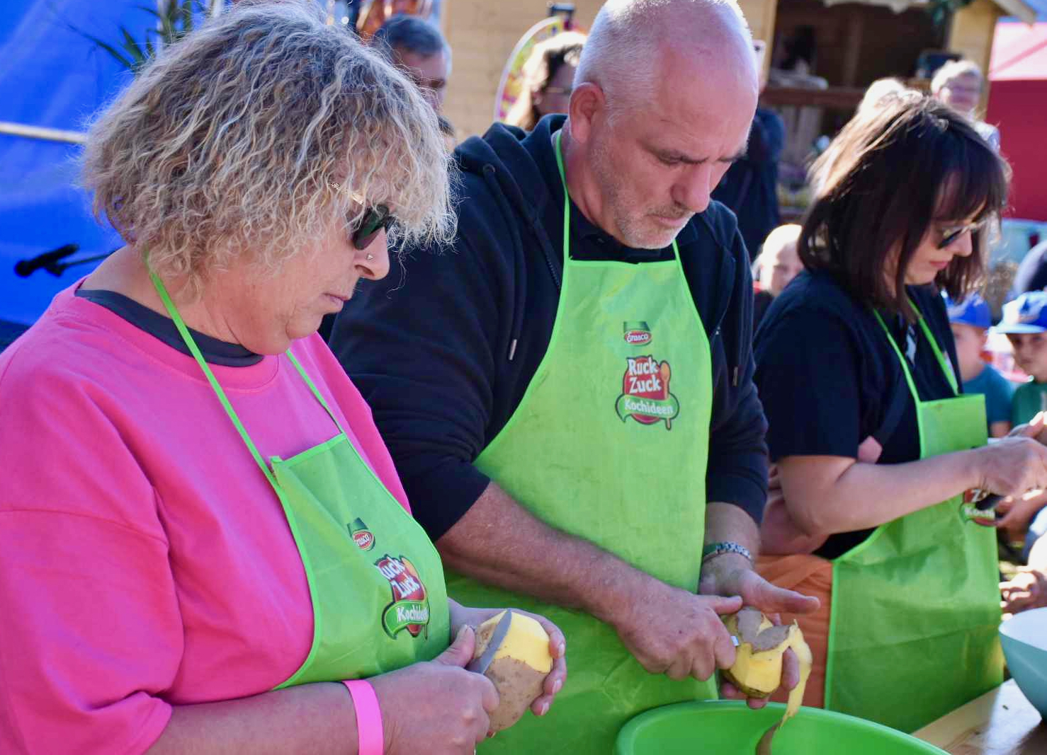 Zahlreiche Schaulustige haben den Teilnehmern zugewunken. Anschließend ging es um den Pokal der „Goldenen Knolle“. In einem Wettbewerb mit insgesamt vier Spielen mussten die fünf angetretenen Teams um den Pokal spielen. Seit zwei Jahren steht der Wanderpokal bei der Freiwilligen Feuerwehr Alt Schwerin. Die freiwilligen Retter konnten den Titel aber nicht verteidigen, denn es gewann das Team des Agroneums. Beim Wettkampf mussten die Teams die längste Kartoffelschale schälen, fünf Kartoffeln auf Zeit schälen, Sackhüpfen und ein Quiz absolvieren. Es war ein knappes Spiel, aber es kann eben nur einen Gewinner geben. Und es war natürlich beste Unterhaltung für die vielen Zuschauer. Im kommenden Jahr geht dann der Kampf um den Pokal in die nächste Runde.