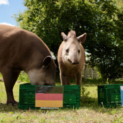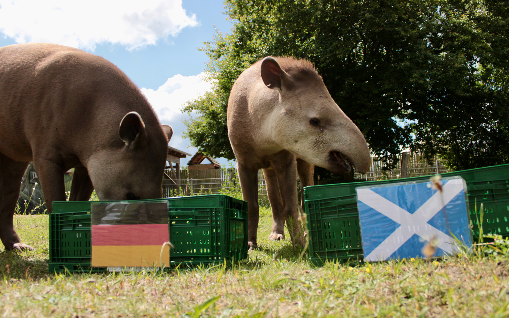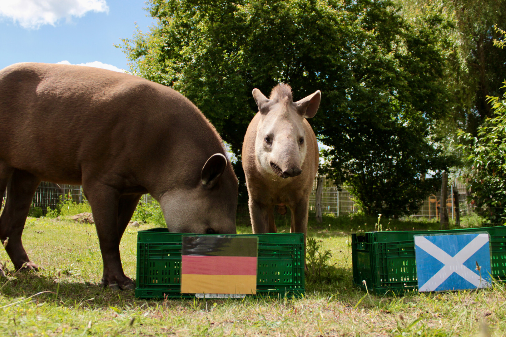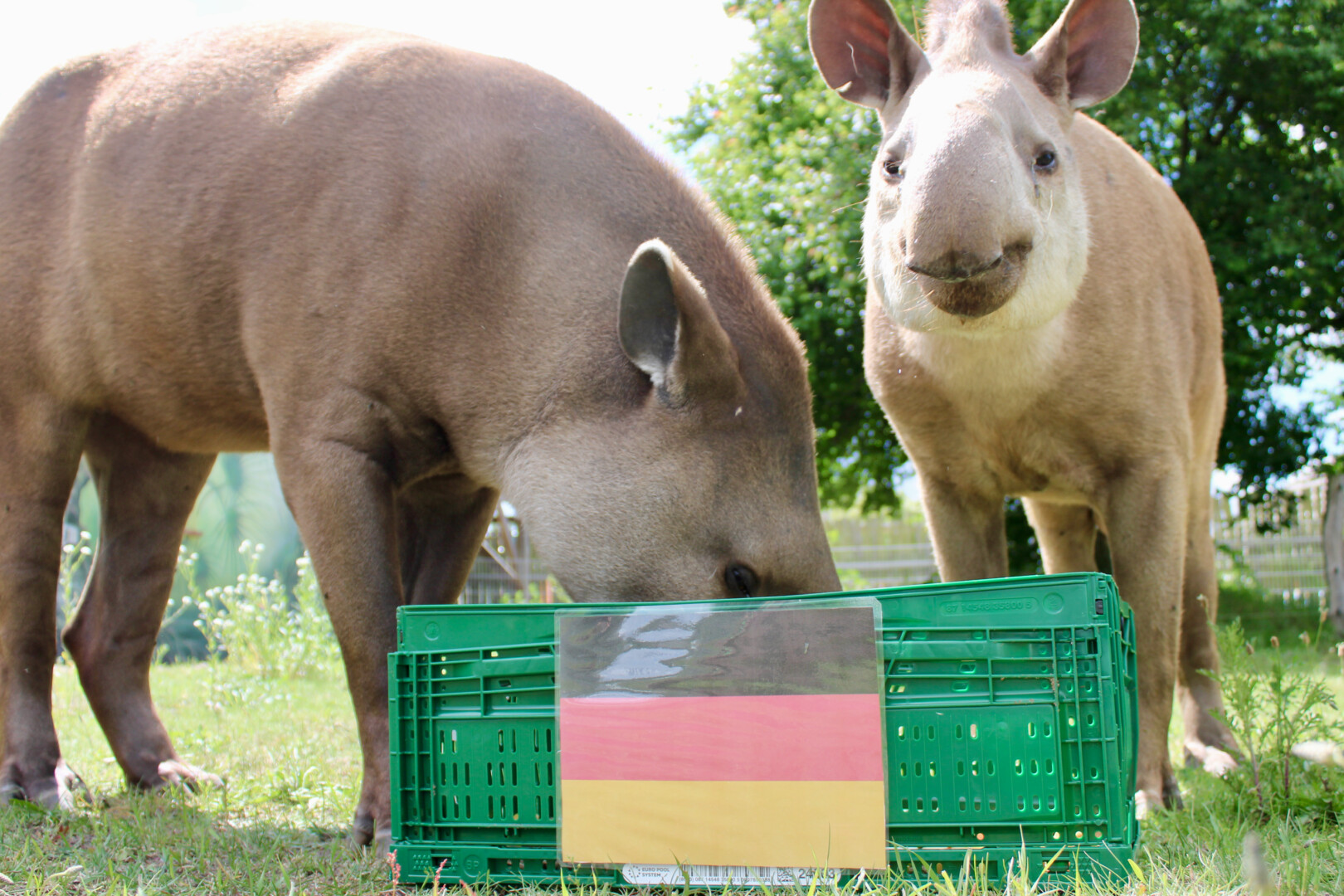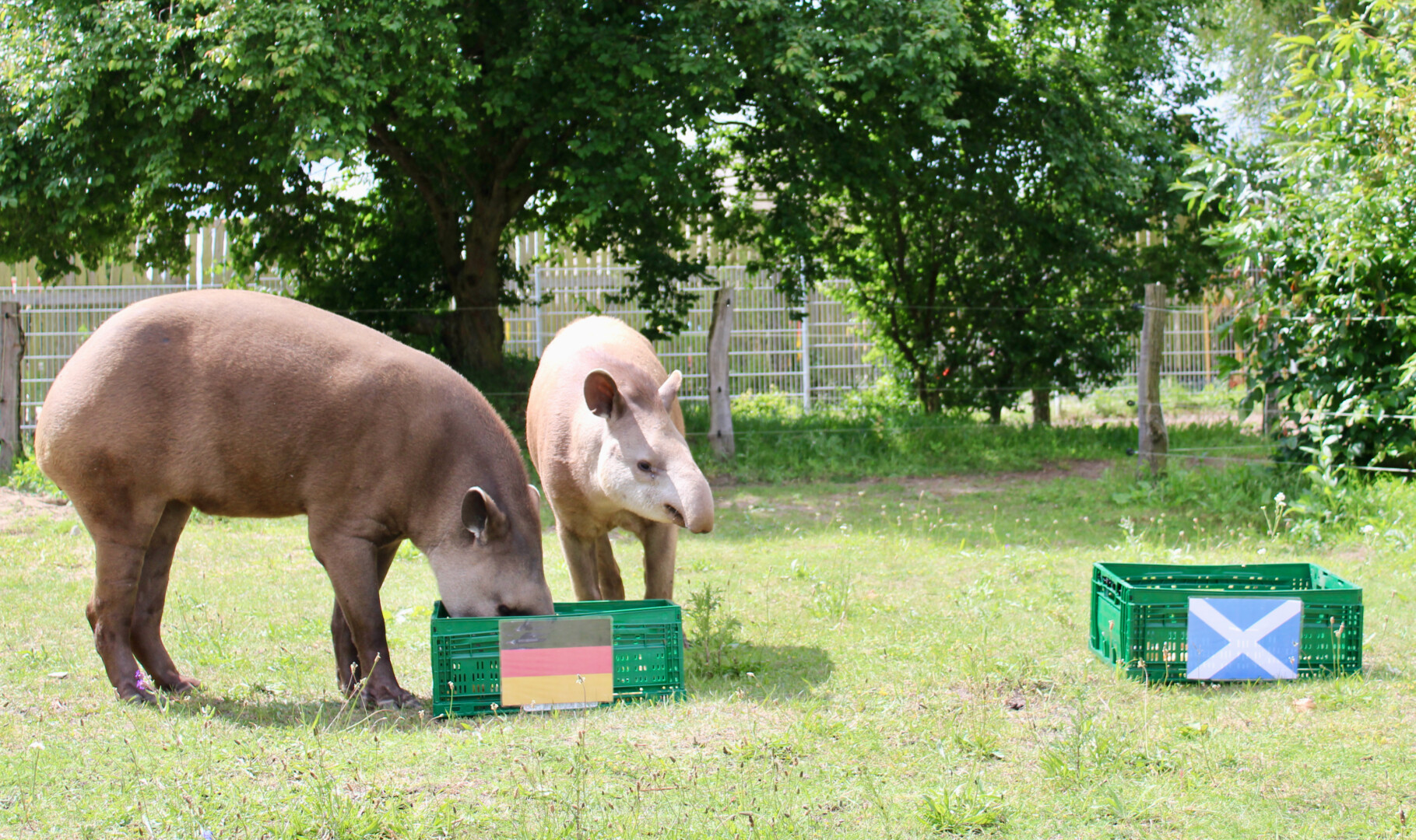 Die beiden Tapire werden ab sofort bei allen Deutschland-Spielen orakeln. Aber keine Sorge, wenn sie mal falsch liegen, wird ihnen nicht gleich das Futter gestrichen. David wird ihnen dann nur gut zureden, sich künftig mehr anzustrengen.