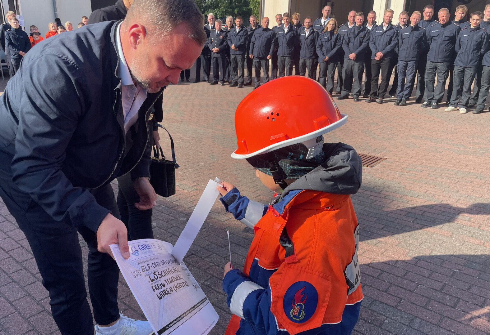 Dieser Geburtstag hat sich für die Freiwilligen der Warener Feuerwehr richtig gelohnt, denn nicht nur viele Neugierige strömten am Sonnabend auf das Areal in der Goethestraße, sondern auch Gäste, die nicht mit leeren Händen kamen. Dabei sorgte eine Scheckübergabe bei allen Kameraden und Besuchern regelrecht für Gänsehaut: Die Griebsch Versicherungsmakler GmbH feiert in diesem Jahr ihren 33. Geburtstag und hat ihre Kunden sowie Partner bei verschiedenen Veranstaltungen gebeten, statt Geschenke zu kaufen auf ein Spendenkonto zugunsten der Löschfüchse der Warener Wehr einzuzahlen. Die Summe, die dabei zusammengekommen ist, ließ auch Wehrführer Reimond Kamrath den Atem stocken.
