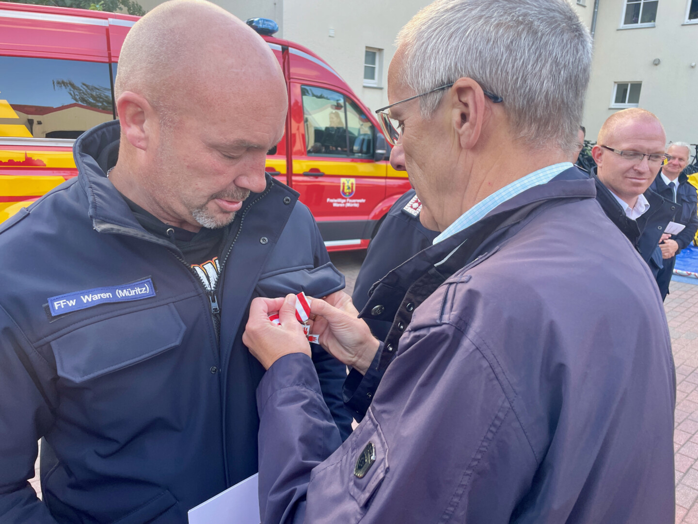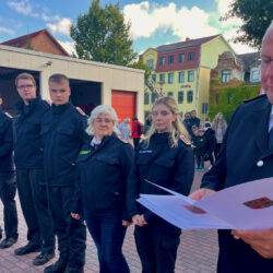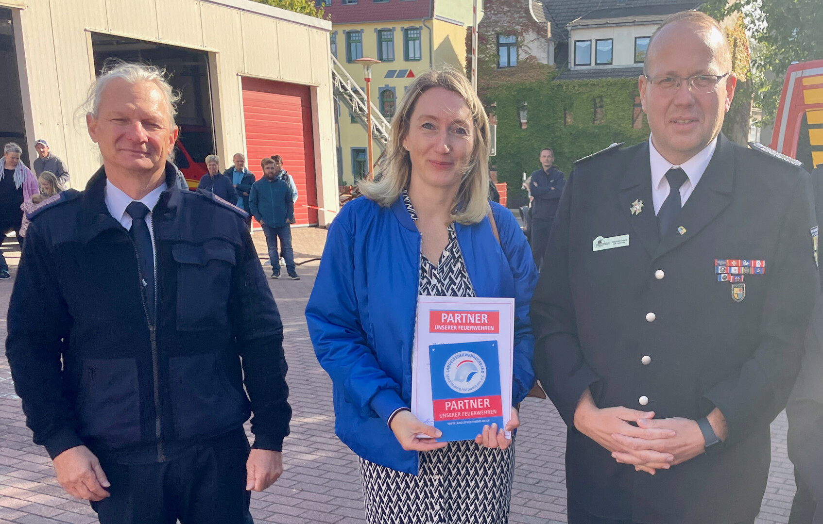 Doch sie hat nicht nur ein Geschenk überreicht, sondern – sehr zu ihrer Überraschung – auch eins bekommen. Als jahrelange Unterstützer der Feuerwehren in der Seenplatte hat Kreisbrandmeister Stephan Drews die Mecklenburger Backstuben ausgezeichnet und zu offiziellen Partnern ernannt.