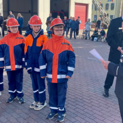 Und dann waren da nach vier kleine Löschfüchse, für die der Geburtstag der Warener Feuerwehr zum großen Tag wurde: Lotta Marie Pitz, Vincent Hildebrandt, Leo Stier und Raphael Hildebrandt gehören ab sofort zur Jugendfeuerwehr.