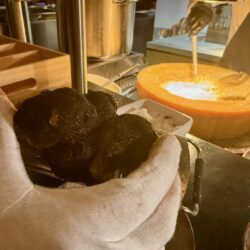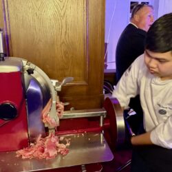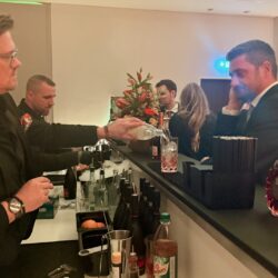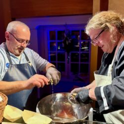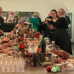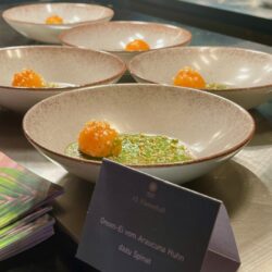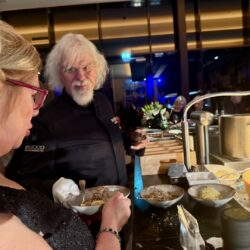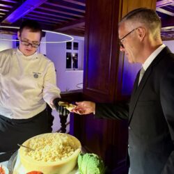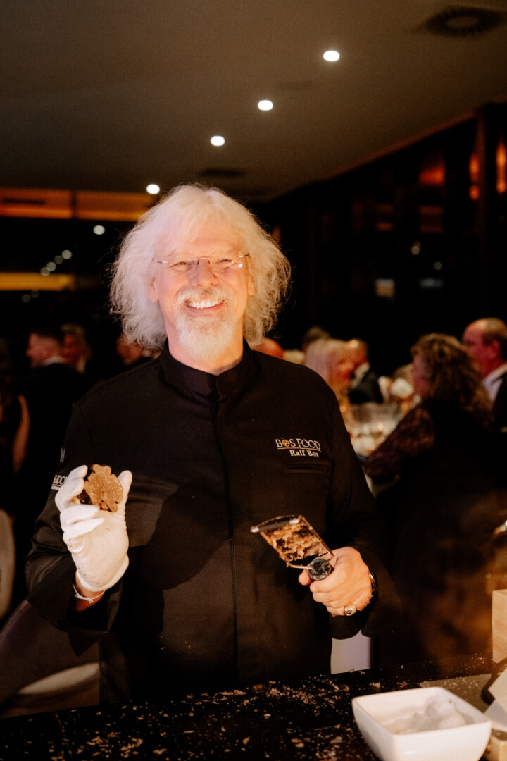 Küchenchef Christian Braun und sein Team verwöhnten die Gäste mit einem kulinarischen Angebot der Extraklasse. Gemeinsam mit Deutschlands „Trüffelpapst“ Ralf Bos kreierten sie an verschiedenen Food-Stationen eine harmonische Symbiose aus regionalen und internationalen Köstlichkeiten. Von fangfrischem Fisch aus der Müritz bis zu den handgefertigten Pralinen der Schokoladerie Juliet de Prie – die Auswahl ließ keine Wünsche offen. Ergänzt wurde das Angebot durch langjährige Genuss-Partner, die erlesene Weine und Spirituosen an Verkostungstischen präsentierten. Das Besondere: Zur Schloss-Küchencrew gesellen sich extra für den Flanierball Jahr für Jahr viele „Ehemalige“, die es sich einfach nicht nehmen lassen wollen, die Gäste beim Flanierball zu verwöhnen.