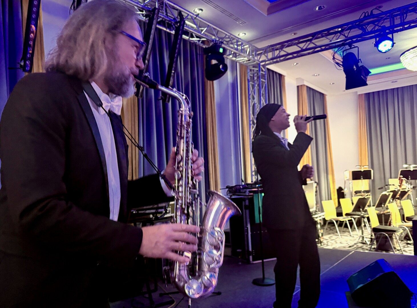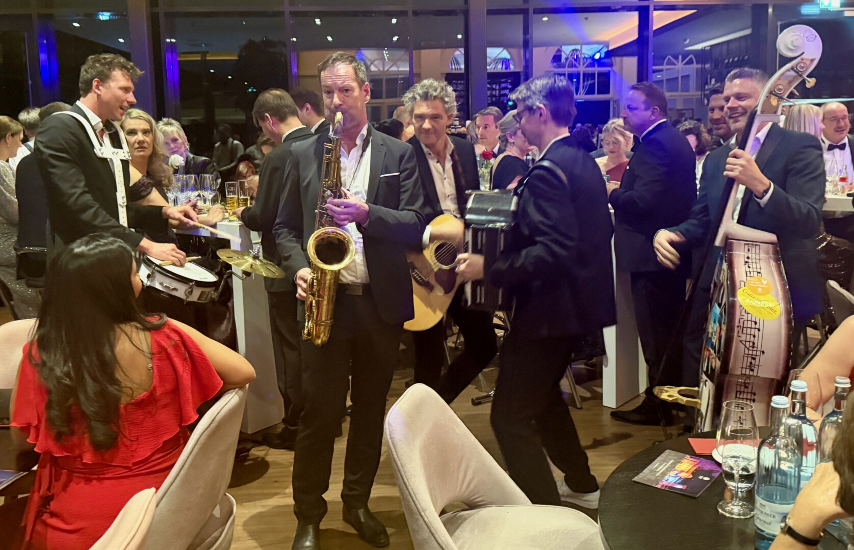 Der Abend begann traditionell mit einem Empfang des Fanfarenzugs Neustrelitz, der die Gäste am Eingang des Schlosses willkommen hieß. Die Neubrandenburger Philharmonie eröffnete den ersten Tanz, für die musikalische Vielfalt sorgten „The Jukeboys“, „Lopes Duo & Lopes Quartett“ und „White Only“, die gemeinsam mit den DJs Michael Tataris, Dr. Music und DJ René die Tanzflächen bis in die frühen Morgenstunden belebten. Ob klassischer Walzer, Cha-Cha-Cha oder Rock’n’Roll – die Gäste genossen eine abwechslungsreiche Mischung, die für jeden Musikgeschmack etwas bot.