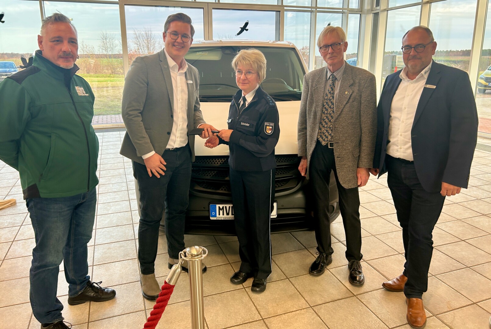 Die Verkehrswacht Müritz ist wieder mobil. Sie ist in der Region unter anderem unterwegs, um in Schule und Kindertagesstätten in Sachen Verkehr aufzuklären, denn auch das trägt dazu bei, Unfälle zu verhindern. Außerdem gehören die Fahrradschule im Verkehrsgarten, die Projekte Verkehrslotse und Busengel zu den Aufgaben des Vereins. Doch der Transporter, mit dem die „Verkehrs-Aufklärer“ unterwegs waren, hatte seine besten Jahre lange hinter sich. Das 15 Jahre alte Fahrzeug wäre nach Angaben von Peter Handsche, Ordnungsamtschef im Landkreis und Vorsitzender der Verkehrswacht, ohne große Investitionen nicht mehr durch den TÜV gekommen. Doch Dank der Hilfe verschiedener Partner steht der Verkehrswacht jetzt ein fast neuer Mercedes Vito zur Verfügung, den die Präventionsbeamtin der Warener Polizei, Bianca Schröder, in Empfang nehmen konnte.