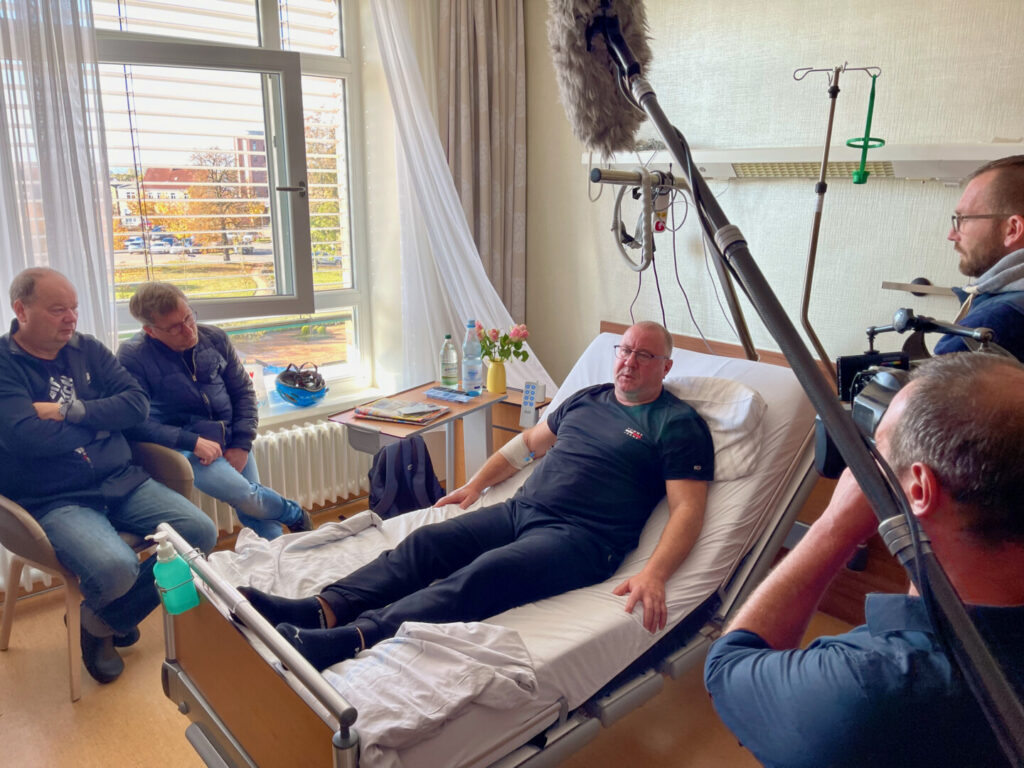 Bei dem Unfall während der Löscharbeiten in der Bootswerft hat Michael unter anderem Frakturen im Beckenbereich erlitten. Seine Kameraden konnten ihn schnell retten. Nach einem Aufenthalt im Warener Klinikum, ging’s für ihn nach Neubrandenburg und von da aus direkt in die Unfall-Klinik nach Berlin. Dort blieb er vier Wochen. Wie sich herausstellte, hatte auch das Knie von Michael etwas abbekommen, es folgte eine Operation – die dann wieder in Waren.