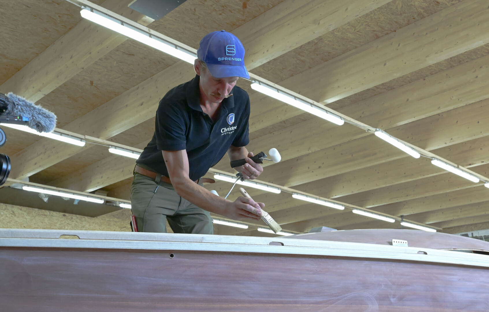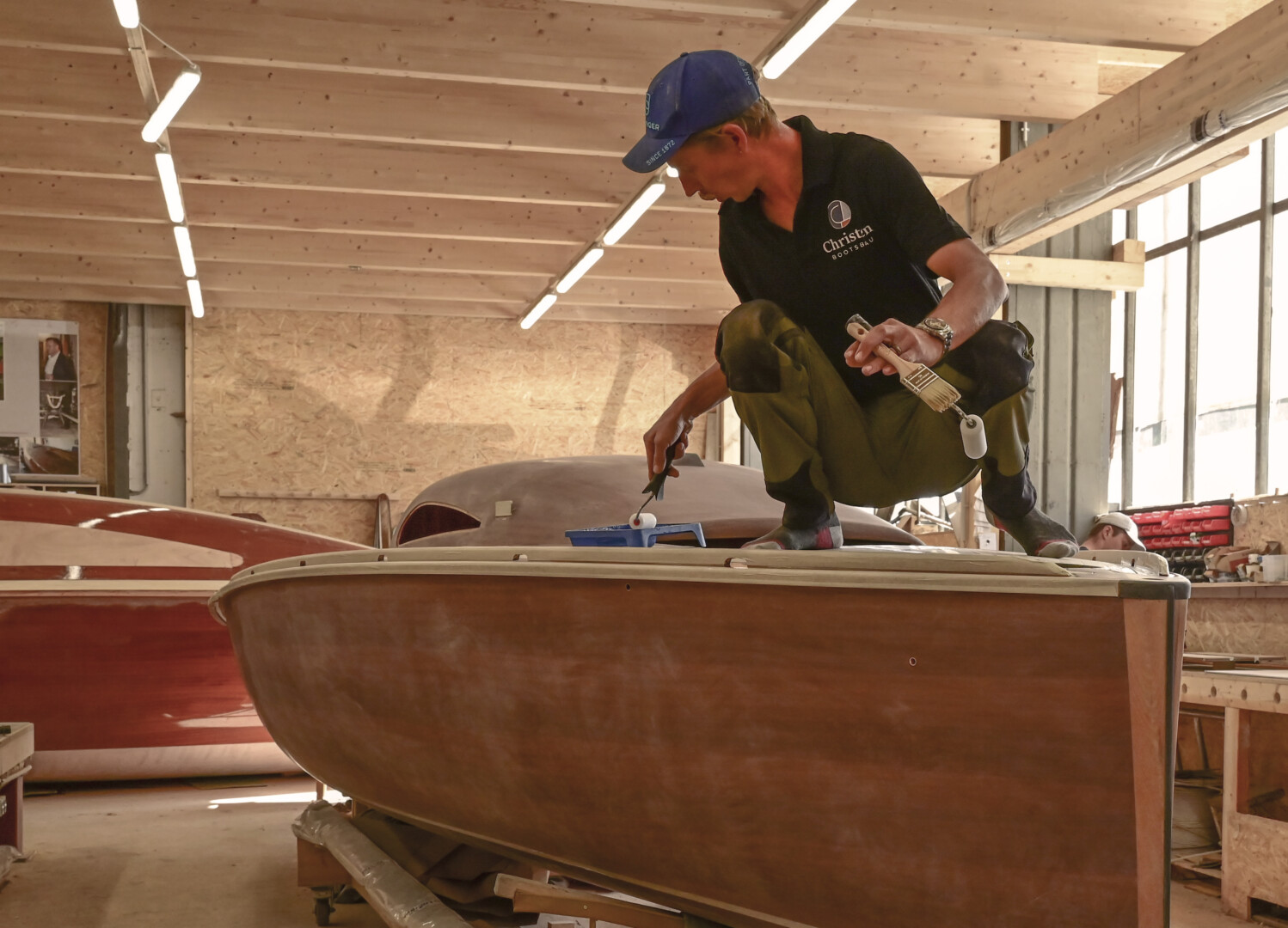 Die Werft in Kamerun besteht seit 1946, die Eltern von Jens Christen übernahmen sie 1979, er selbst lernte im elterlichen Betrieb und musste ihn nach dem plötzlichen Unfalltod seiner Eltern 1995 von gleich auf jetzt übernehmen. Die präzise Qualitätsarbeit, die seine Boote so besonders machen, hat das Unternehmen über die Grenzen Deutschlands hinaus bekannt gemacht. Sechs bis zwölf Monate dauert der Bau eines bestellten Bootes, auch Restaurierungen von alten Modellen brauchen ihre Zeit. Hier ist nichts von der Stange, alles individuelle Fertigungen und Restaurierungen. Die Kunden bekommen Unikate und Liebhaberstücke, die sie ein Leben lang begleiten.