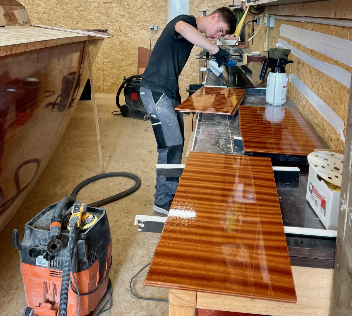 „Nein, wir wollen auf gar keinen Fall in eine andere Firma, wir wollen bei Jens bleiben“, sagte Azubi Ole einen Tag nach dem Feuer gegenüber „Wir sind Müritzer“. Er ist im dritten Ausbildungsjahr, kommt aus einer Potsdamer Bootsbauerfamilie und konnte seine Tränen im Oktober des vergangenen Jahres nicht zurückhalten. Heute erzählt Ole ganz begeistert von seinem tollen Beruf, den er lernt, von der Zeit nach der Brand-Katastrophe und seinen Plänen für die Zukunft.