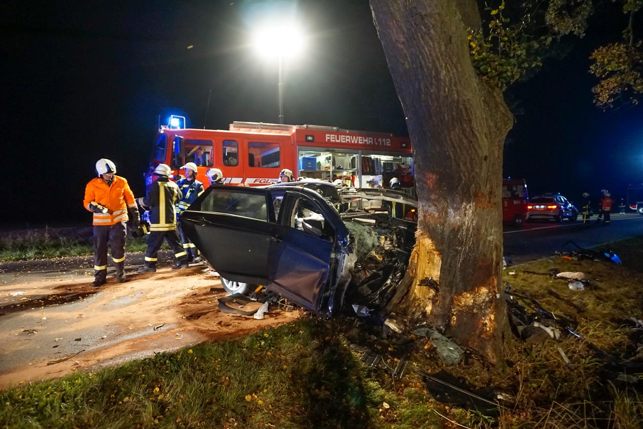 Um 20:05 Uhr dann der nächste schwere Verkehrsunfall auf der B193 bei Peckatel. Nach ersten Erkenntnissen war ein 30-jährige Fahrer aus Richtung Peckatel in Richtung Penzlin unterwegs und kam aus noch ungeklärter Ursache nach rechts von der Fahrbahn ab. Am Fahrbahnrand prallte er dann gegen einen Straßenbaum. Der junge Mann erlag noch an der Unfallstelle seinen schweren Verletzungen. Am Hyundai entstand wirtschaftlicher Totalschaden. Die Bundesstraße war bis kurz vor Mitternacht aufgrund der Bergungs- und Fahrbahnreinigungsarbeiten