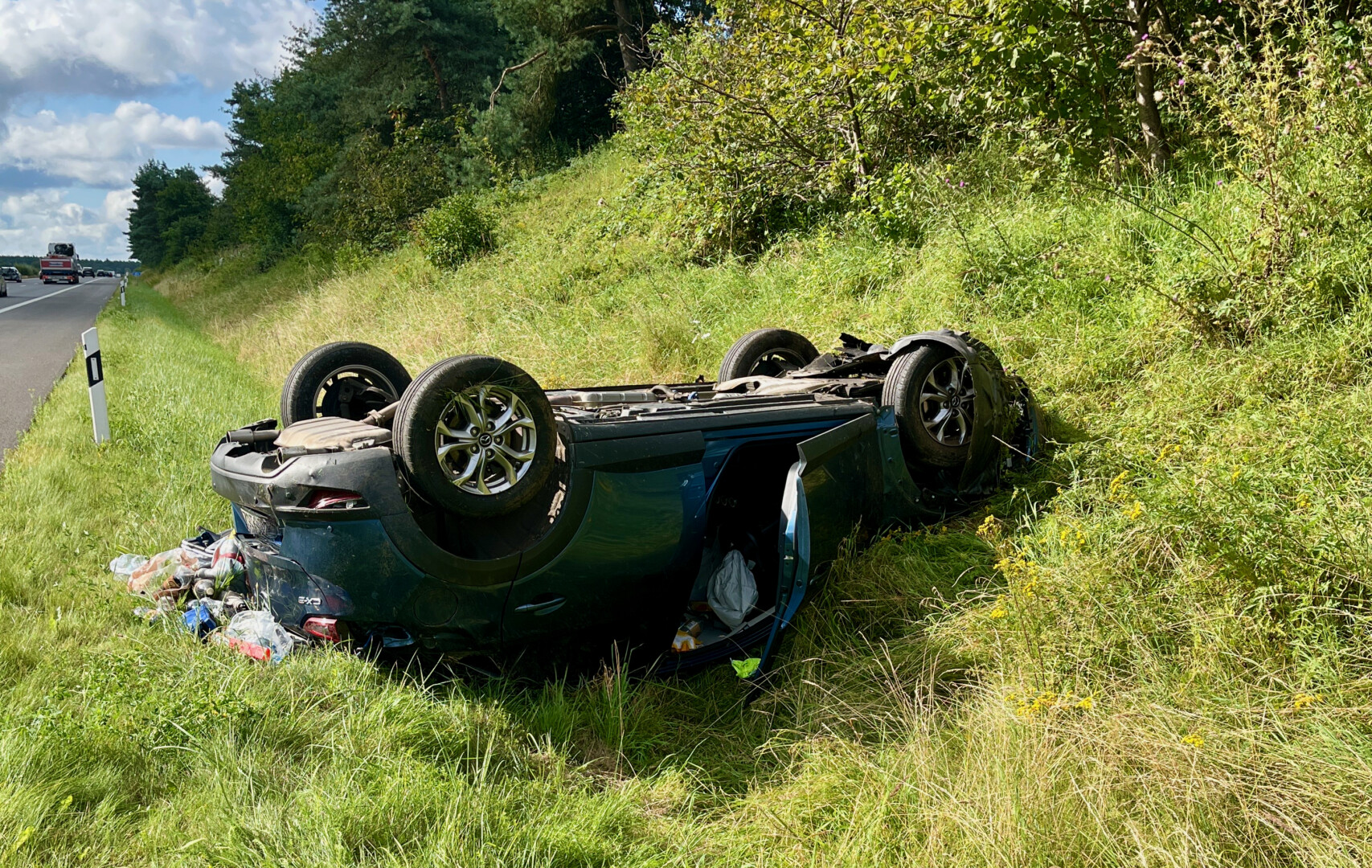 Unfall auf der A19 im Bereich Linstow: Nach gegenwärtigem Erkenntnisstand ist eine 33-jährige Fahrerin eines Mazda heute gegen 8.10 Uhr aus bislang ungeklärter Ursache nach rechts von der Fahrbahn abgekommen. Der Pkw überschlug sich und kam in der Böschung auf dem Dach liegend zum Stillstand. Aufgrund des Einsatzes eines Rettungshubschraubers musste die Fahrbahn in Richtung Berlin für etwa eine Stunde voll gesperrt werden. Die Fahrerin aus Waren ist vor Ort medizinisch versorgt und dann zur weiteren Behandlung in das Klinikum Güstrow gebracht worden. Sie gilt aktuell als schwer verletzt. Der entstandene Sachschaden wird nach einer ersten Einschätzung mit mindestens 15.000 Euro beziffert. Gegen 10 Uhr konnte die Fahrbahn wieder freigegeben werden.