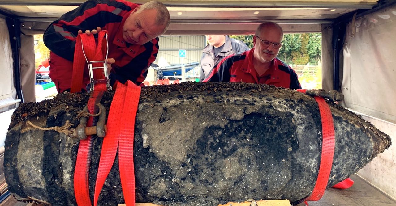 Was für ein Ding! Wasserschutzpolizei und Munitionsbergungsdienst haben heute aus der Müritz eine 500 Kilo Betonbombe aus dem zweiten Weltkrieg geholt. Dabei handelt es sich nach Auskunft der Experten zwar um eine deutsche Übungsbombe, ob sie allerdings Sprengstoff enthält oder nicht, zeigt sich erst bei der fachgerechten Zerlegung. Die Bombe, die bereits Anfang September von einem Wassersportler etwa 100 Meter vom Campingplatz Ludorf entfernt in etwa 1,50 Meter Tiefe entdeckt wurde, geht jetzt zunächst ins Zwischenlager des Munitionsbergungsdienstes nach Mirow.