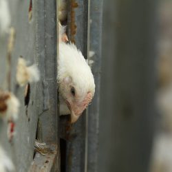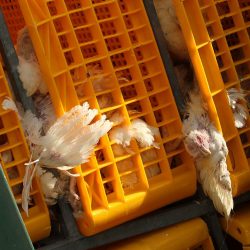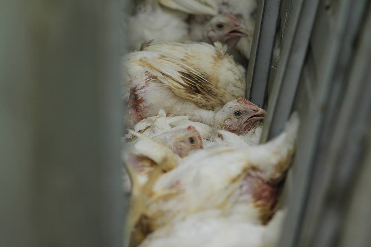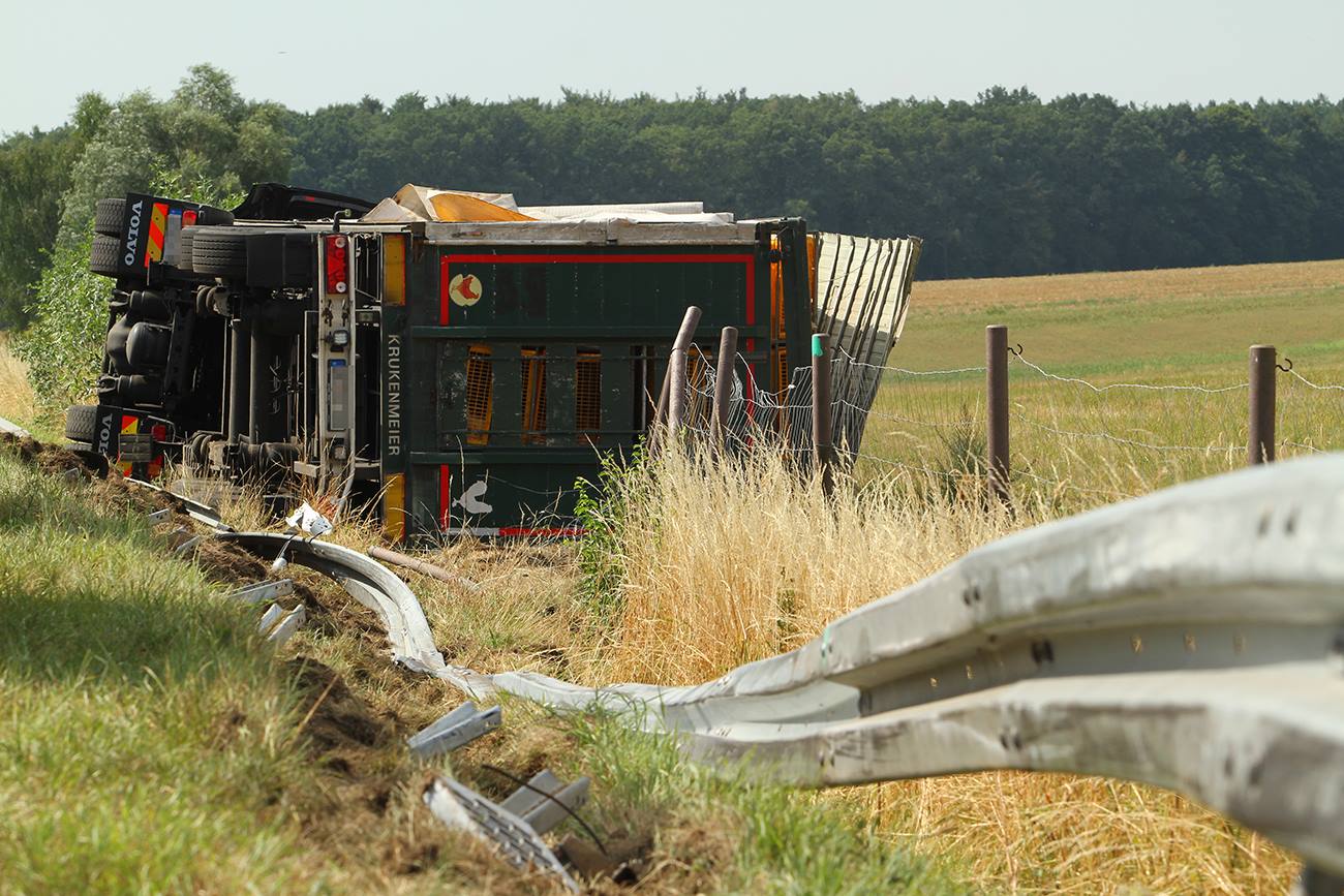 5500 Hühner liegen im Laster an der Autobahn