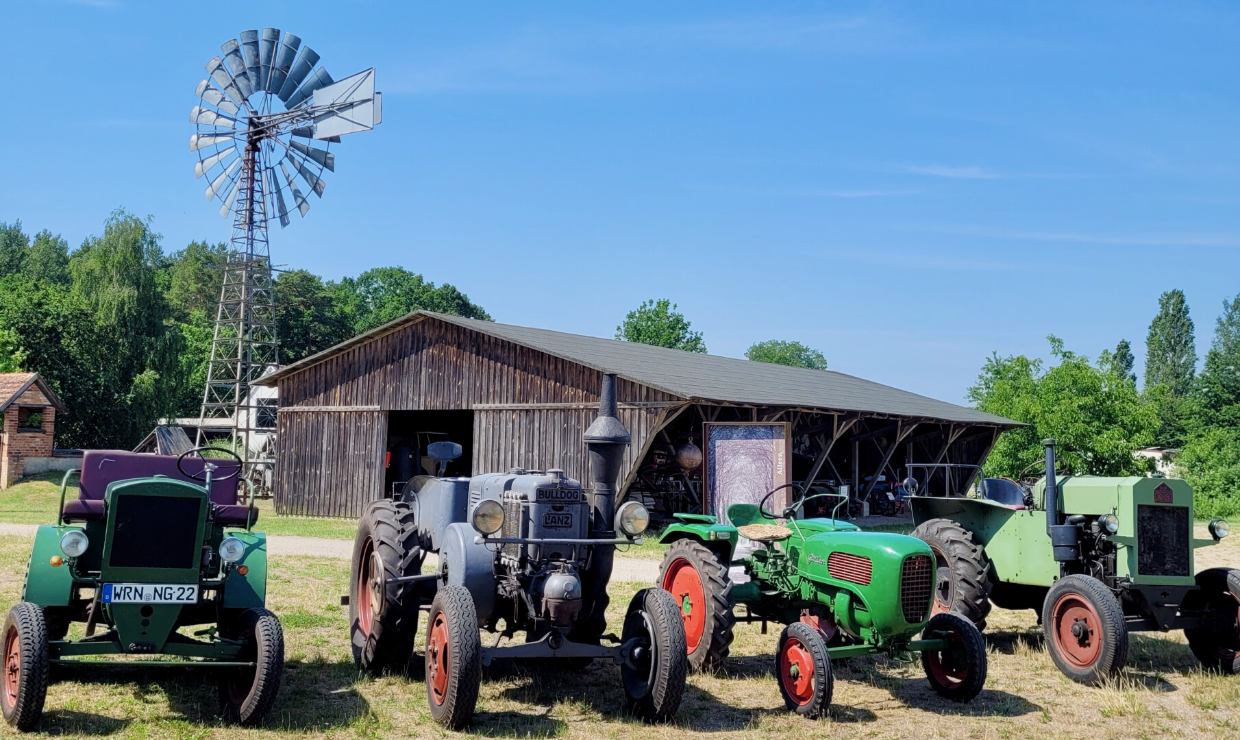 Technik im Wandel der Zeit und Handwerk erleben waren die Schwerpunkte während der vier Aktionstage auf dem Freigelände. Moderne Landwirtschaftstechnik wurde den historischen Landmaschinen aus der Sammlung des Museums gegenübergestellt. Für viele Besucher ein Bild, das die technische Weiterentwicklung auf beeindruckende Weise verdeutlichte. Kinder aus Kitas und Grundschulen hatten die Gelegenheit, die verschiedenen museumspädagogischen Angebote – Schule vor 100 Jahren, Buttern, Wäsche waschen wie früher – kostenfrei auszuprobieren. Dazu wurde Spiel und Spaß rund um die Themen Tier, Natur und Technik geboten.