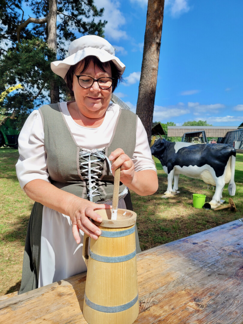Technik im Wandel der Zeit und Handwerk erleben waren die Schwerpunkte während der vier Aktionstage auf dem Freigelände. Moderne Landwirtschaftstechnik wurde den historischen Landmaschinen aus der Sammlung des Museums gegenübergestellt. Für viele Besucher ein Bild, das die technische Weiterentwicklung auf beeindruckende Weise verdeutlichte. Kinder aus Kitas und Grundschulen hatten die Gelegenheit, die verschiedenen museumspädagogischen Angebote – Schule vor 100 Jahren, Buttern, Wäsche waschen wie früher – kostenfrei auszuprobieren. Dazu wurde Spiel und Spaß rund um die Themen Tier, Natur und Technik geboten.