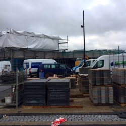 Der soll nämlich am 25. November nach einer Rekordbauzeit von nur wenigen Monaten eröffnen, und so wirbeln in, am und auf dem Gebäude gegenwärtig unzählige Leute, klemmen Kabel, verlegen Gehwegplatten, rücken Regale, bauen Tresen und liefern Möbel.