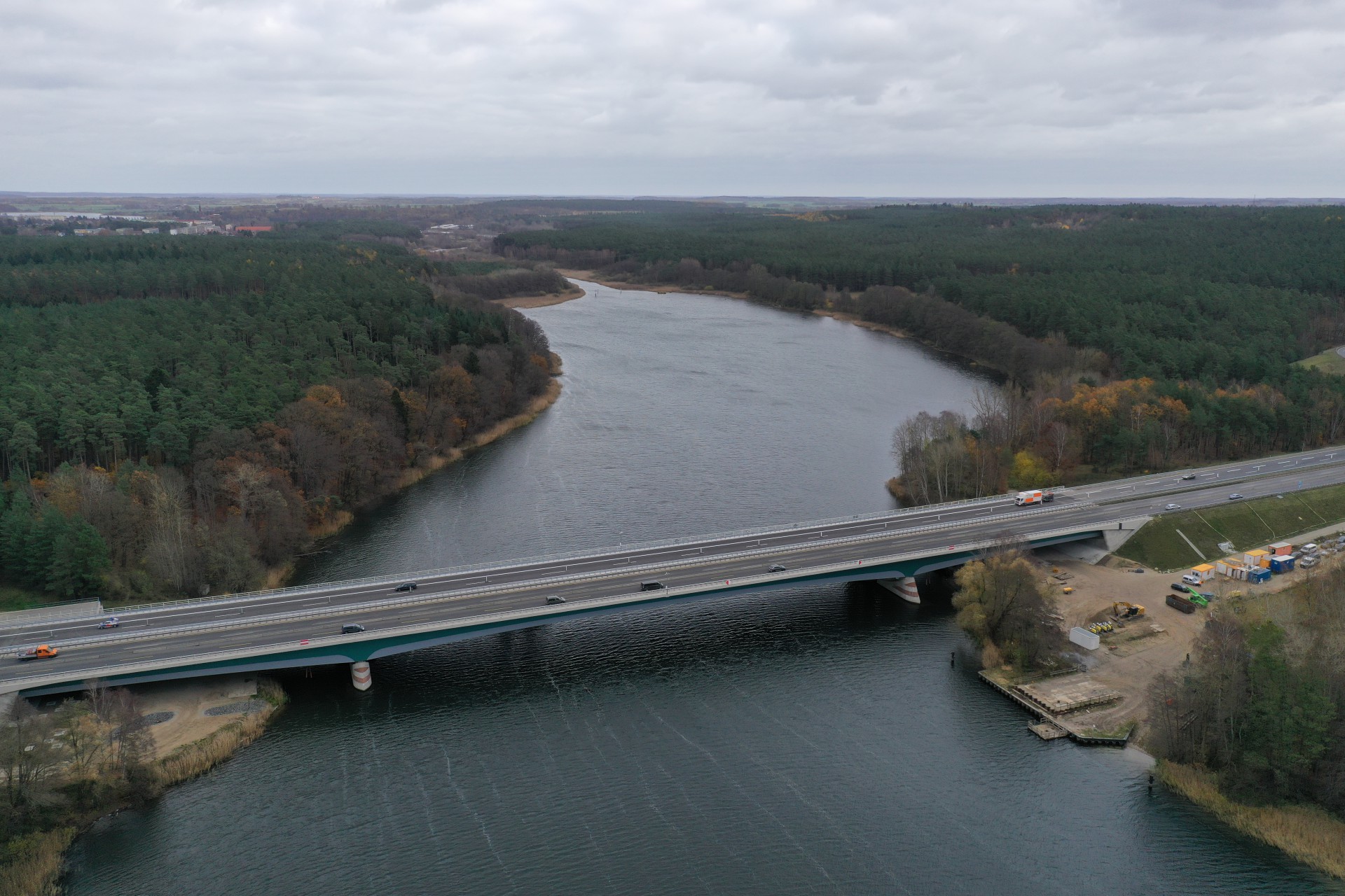 An der Petersdorfer Brücke waren bis heute noch einzelne Restarbeiten zu erledigen: Leitplanken mussten komplettiert werden, die Fahrbahn Richtung Wittstock erhielt ihre endgültige Markierung und die Mittelstreifen-Überfahrten, die für die bisherige Verkehrsführung erforderlich waren, wurden zurückgebaut.