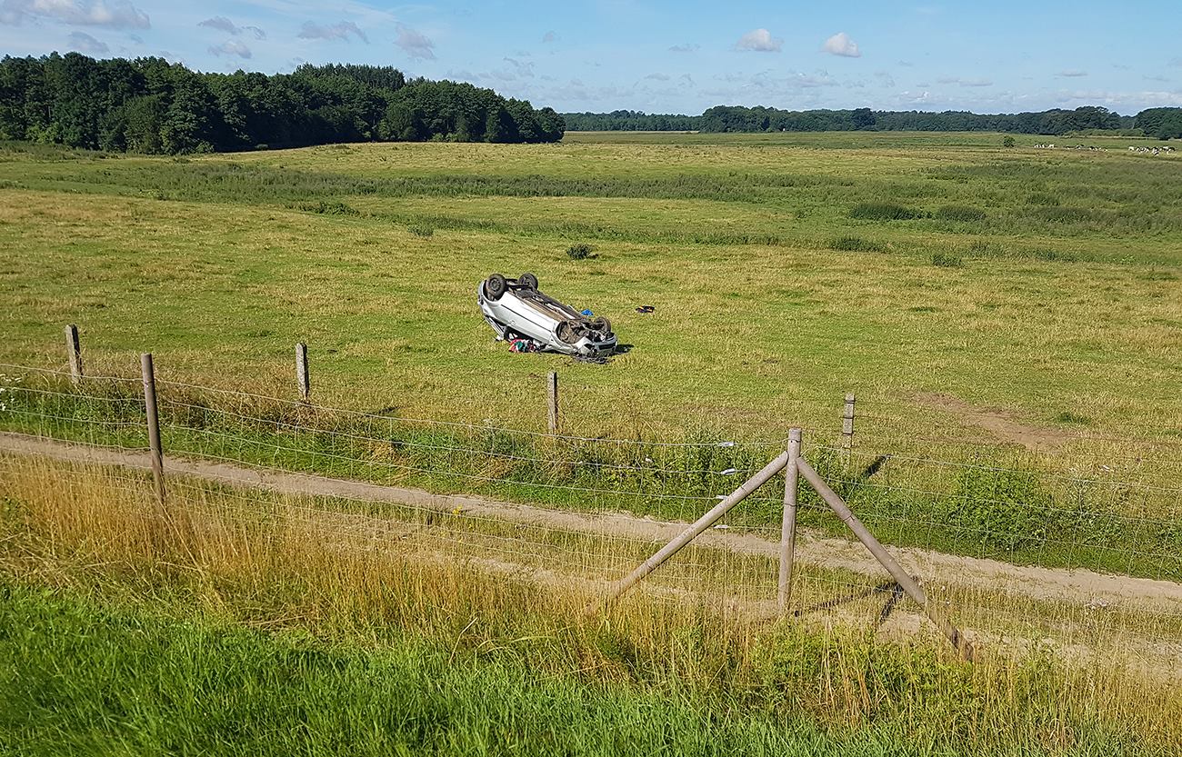 Auf der A19 in Fahrtrichtung Berlin hat sich heute Morgen zwischen der Auffahrt Röbel und der Anschlussstelle Wittstock ein schwerer Verkehrsunfall ereignet. Der 36-jährige Fahrer aus dem Landkreis Rostock kam mit seinem Ford Fiesta aus bisher ungeklärter Ursache rechts von der Fahrbahn ab, durchbrach einen Wildschutzzaun und überschlug sich in der Folge mehrmals. Der Wagen kam mehrere Meter abseits der Autobahn auf dem Dach liegend zum Stehen.