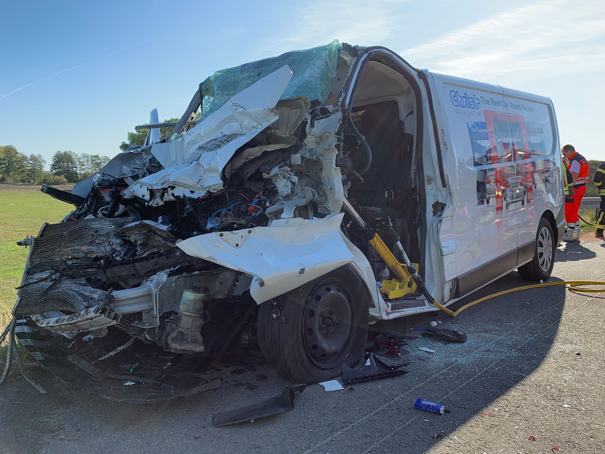 A19: Kleintransporter fährt ungebremst unter Sattelzug