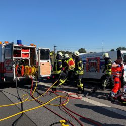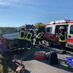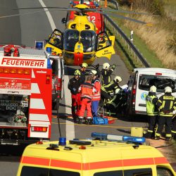 Feuerwehrkräfte mussten schweres Gerät einsetzen und benötigten etwa eine Stunde, um den Schwerverletzten zu befreien. Er wurde anschließend mit einem Rettungshubschrauber in eine Klinik geflogen.
