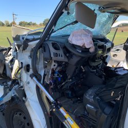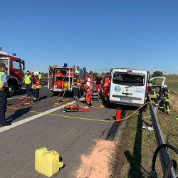 Schwerer Unfall auf der A19 nahe der Landesgrenze zwischen Brandenburg und Mecklenburg-Vorpommern: Ein Kleintransporter fuhr im fließenden Verkehr ungebremst und mit hoher Geschwindigkeit auf einen Sattelzug auf, so dass der Transporter im Frontbereich komplett zerstört und der 40-jährige Fahrer im Inneren eingeklemmt wurde.