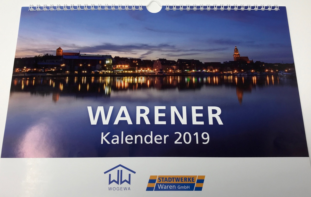 Da ist er wieder, der beliebte Warener Kalender, herausgegeben von den Stadtwerken und der WOGEWA. 13 Fotos mit Motiven aus Waren hat die Jury dafür aus den vielen Einsendungen der Hobby-Fotografen ausgewählt.