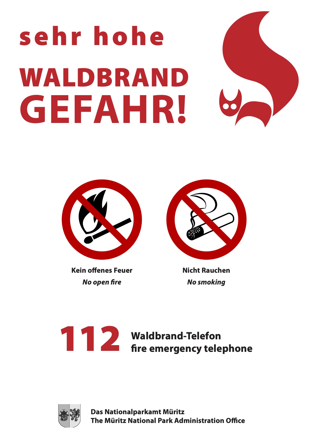 - Jeden Brand bitte unverzüglich der Feuerwehr (Notruf 112), Forstdienststelle oder Polizei melden!