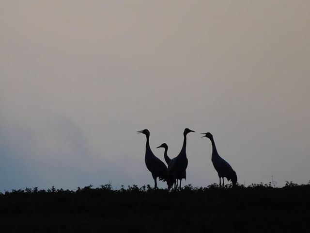 Was sich diese Kraniche wohl gerade zu erzählen haben. Ein Bild von Susan Hoffmann, aufgenommen im Müritz-Nationalpark.