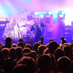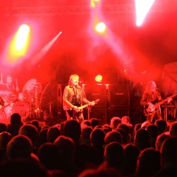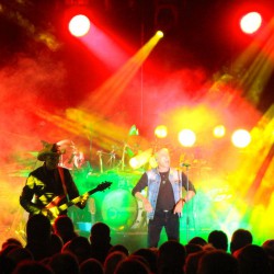 Nach einer Zwangspause während des Bühnenumbaus hatten es die Puhdys zunächst schwerer, die Konzertgäste wieder „wachzurütteln“, aber spätestens, als Maschine sie zünftig und wie man ihn kennt ins Publikum rief „Hallo Waren“, ging’s ausgelassen weiter.
