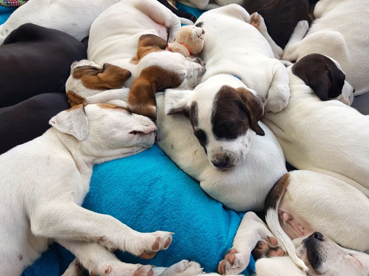 Zum Glück haben Verwandte noch einen Hof in Userin, wo auch der „Vater“ der Welpen – der Münsterländer „Bruno“ – lebt. Gesagt, getan: Die Welpen kamen in einen Stall, der mit einer wärmenden Lampe beheizt wird und wurden per Flasche aufgezogen. Sie sind nun eine Mischung aus Münsterländer sowie Boxer, Bullmastiff und Cane Corso, die Rassen auf die das Muttertier zurückging.