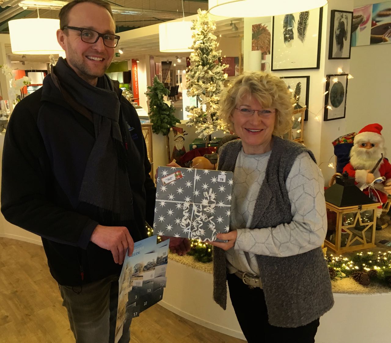 Mehr als 20 Müritzer haben sich ihre Gewinne aus der Weihnachtslotterie des Lionsclub Müritz und des Rotaryclubs Waren bereits im Möbelhaus Kallies abgeholt. So auch Christoph Lebzien (auf dem Foto mit Gudrun Kallies).